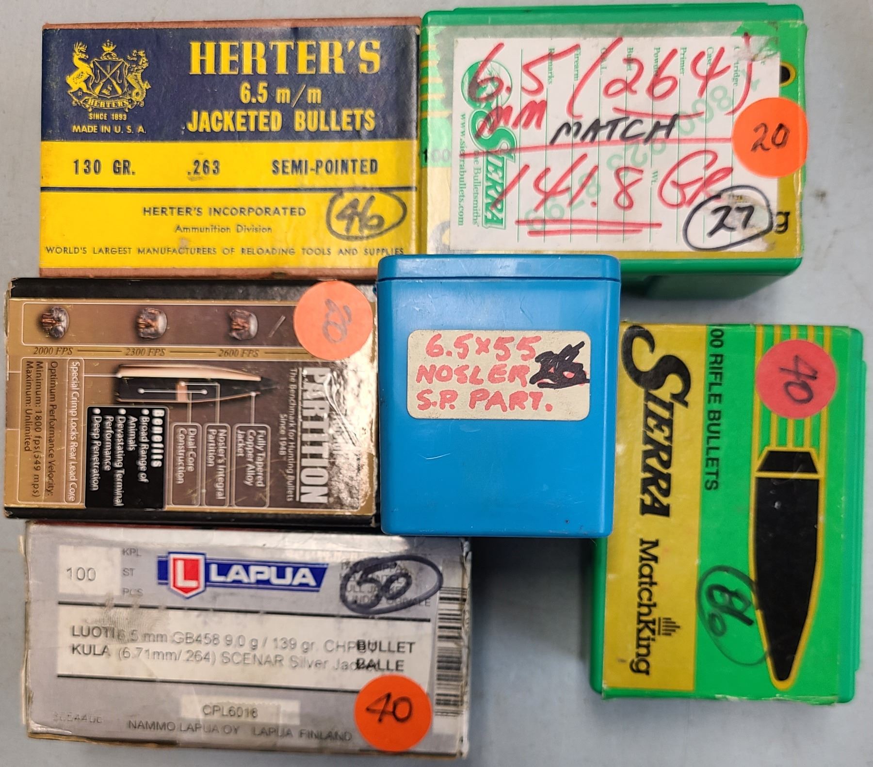 Lot 1370 6.5 mm Mixed Lot of Bullets - See List - +/- 250 rds