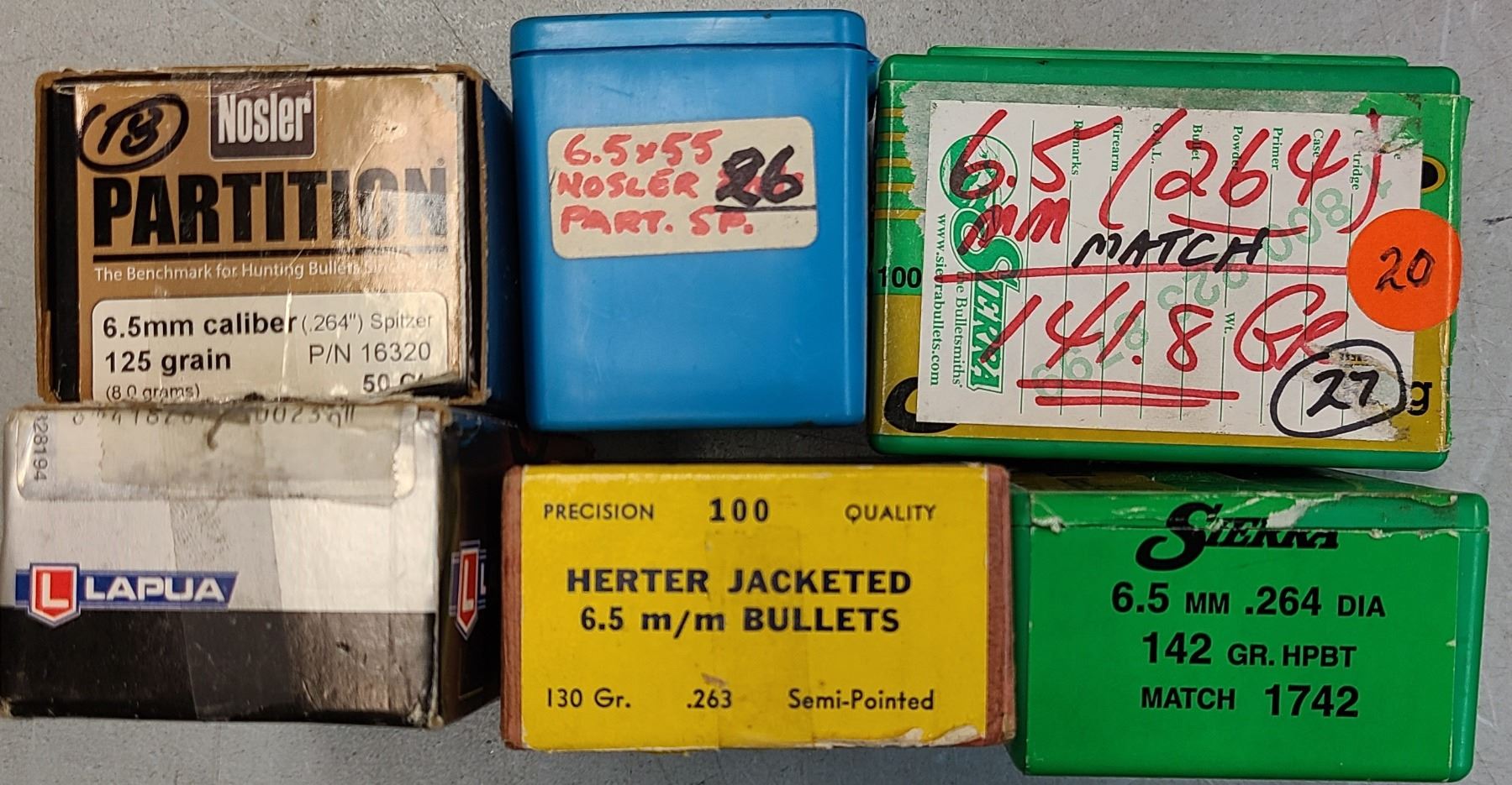 6.5 mm Mixed Lot of Bullets - See List - +/- 250 rds
