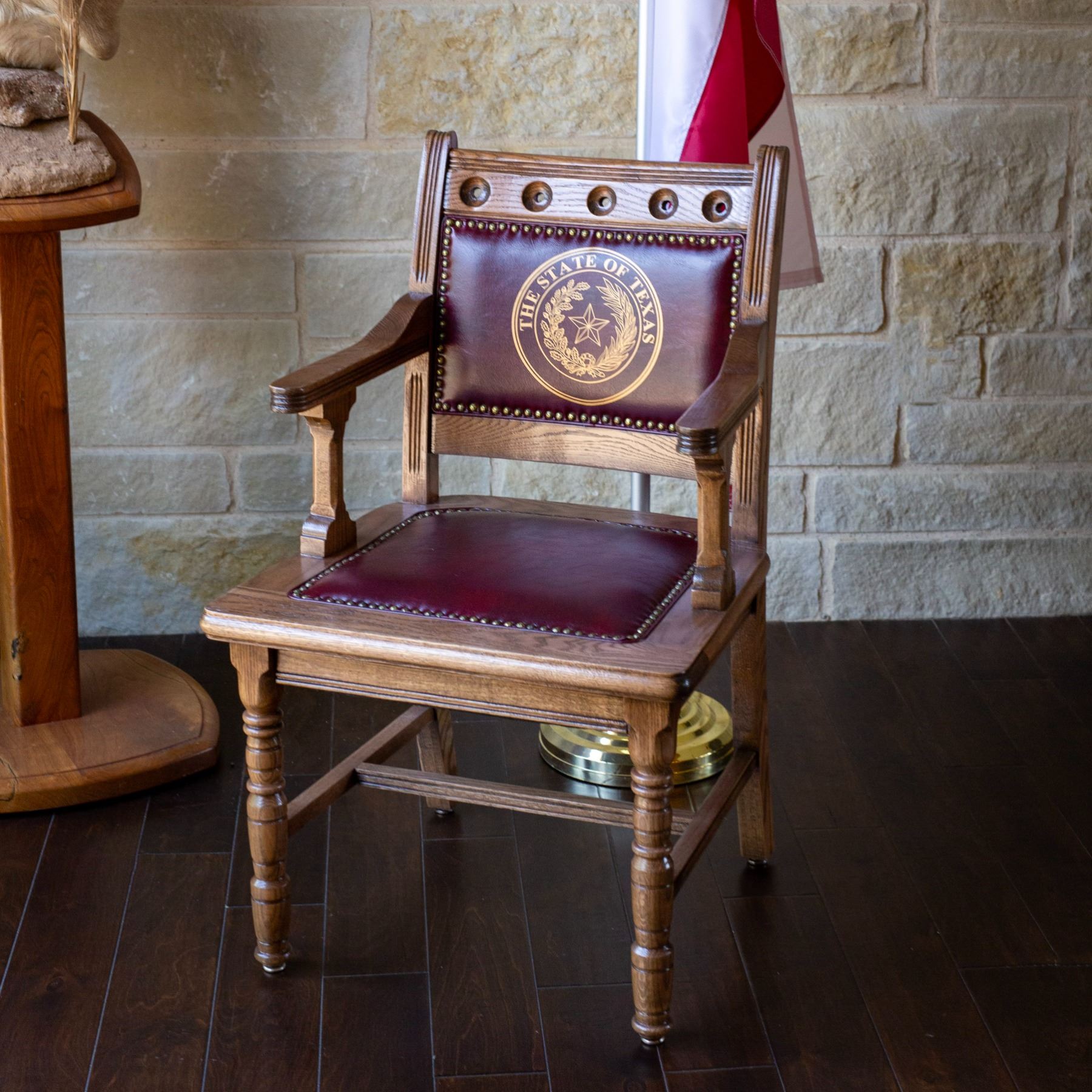 Whether displayed in an office, ranch house, or boardroom, this chair makes a bold statement of Texas pride and public service.
