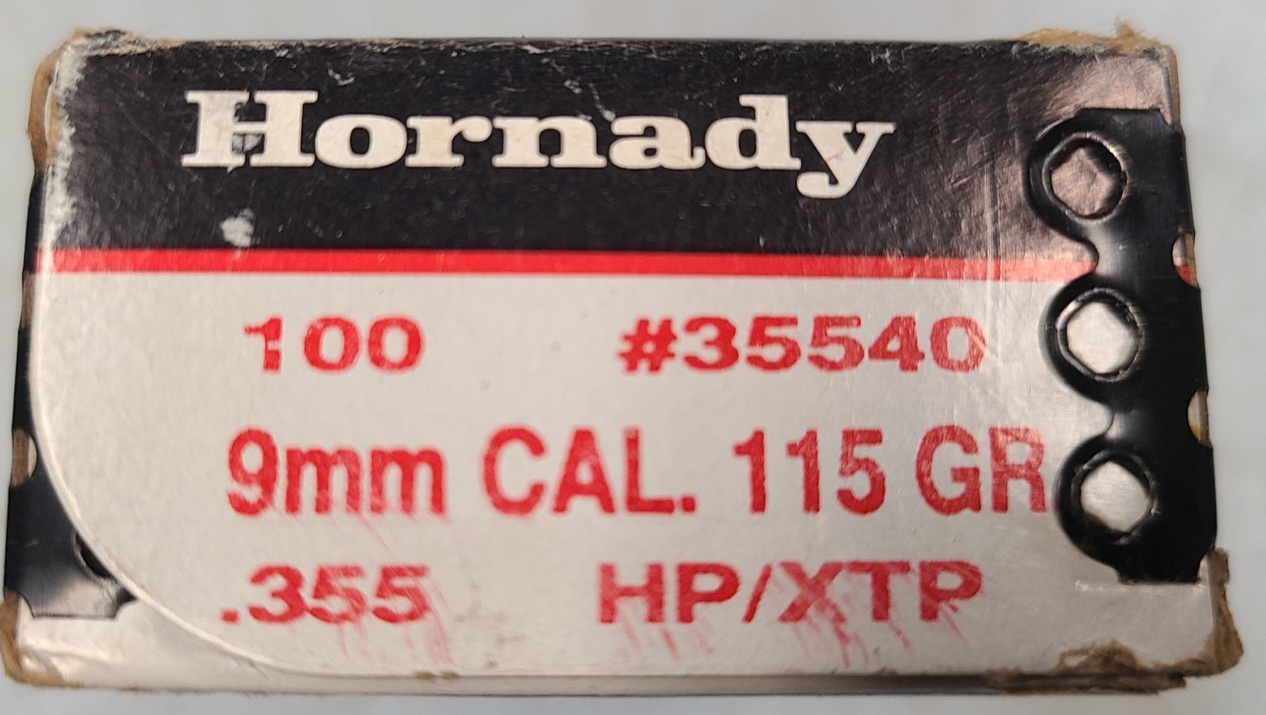 Lot 1399 9mm Hornady Hollow Point XTP 115 gr - 100 rds