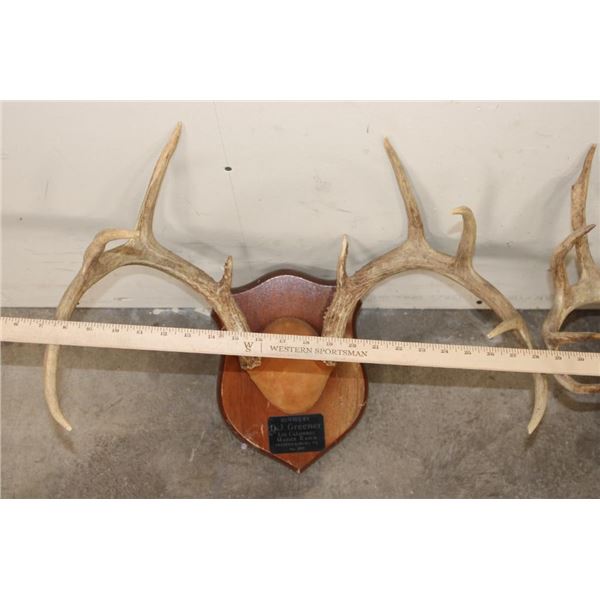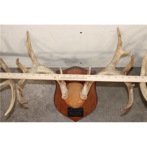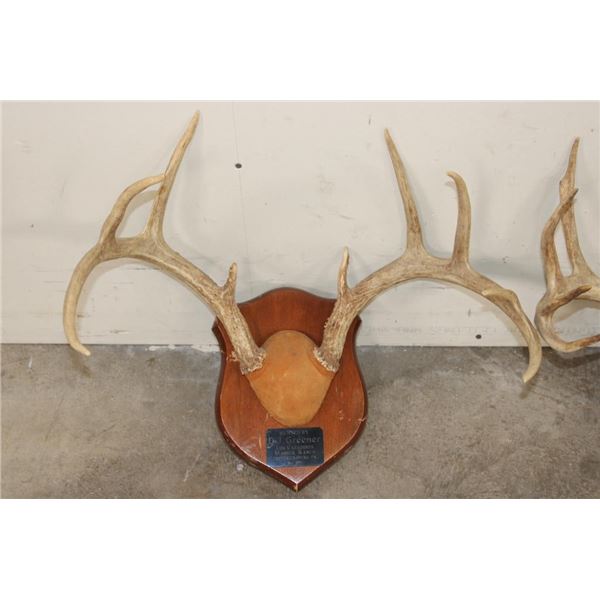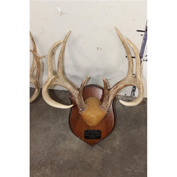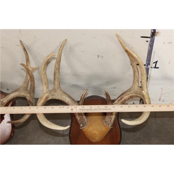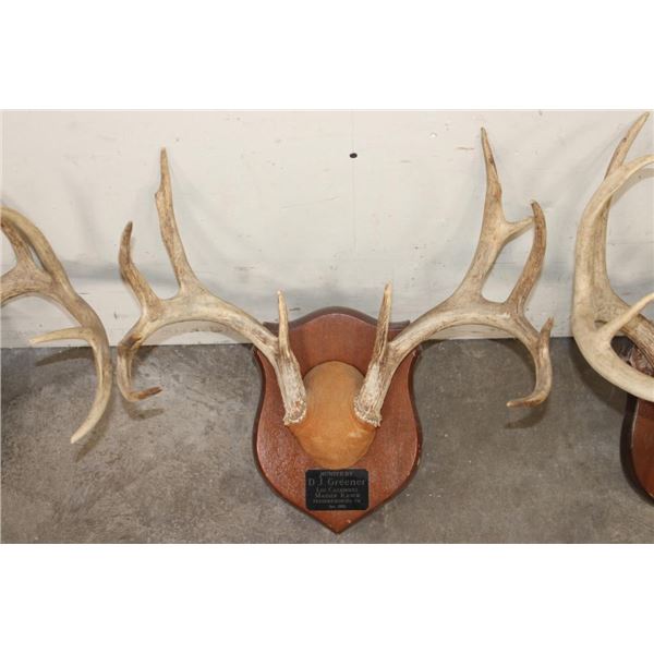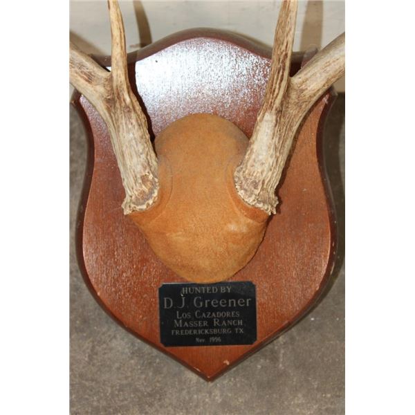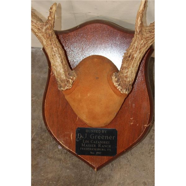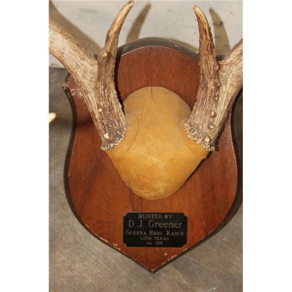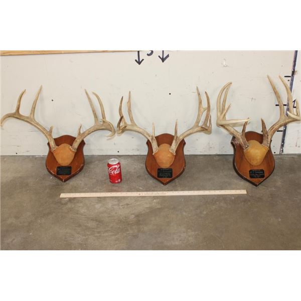 3 Very Respectable WHITETAIL DEER Antler Racks on Matching Wooden Plaques. These were Taken in 1997 and 1996 at Los Cazadores Masser Ranch in Fredericksburg, TX, and Guerra Bros Ranch Linn, TX in January 1996. (ONE$) TAXIDERMY