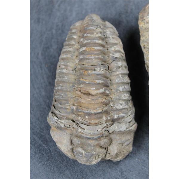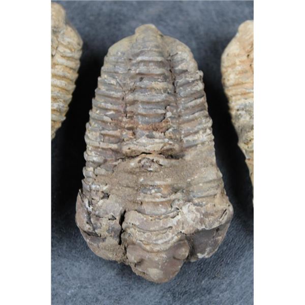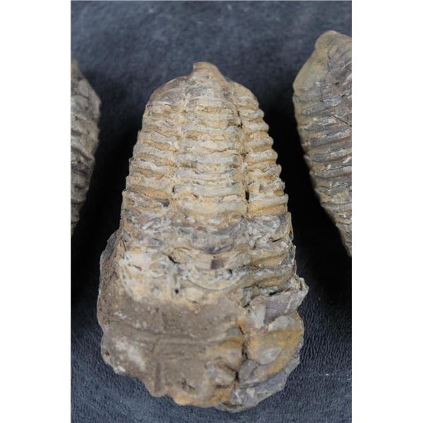 4 Trilobite "Diacalymene" FOSSILS from the Morocco Devonian Era. These are between 380-410 Million Years Old. Dimension are between 3.5"-4" Long x 2"-2.25" Wide. ROCKS FOSSILS MINERALS
