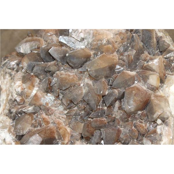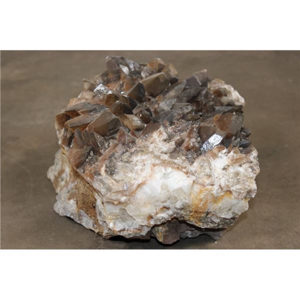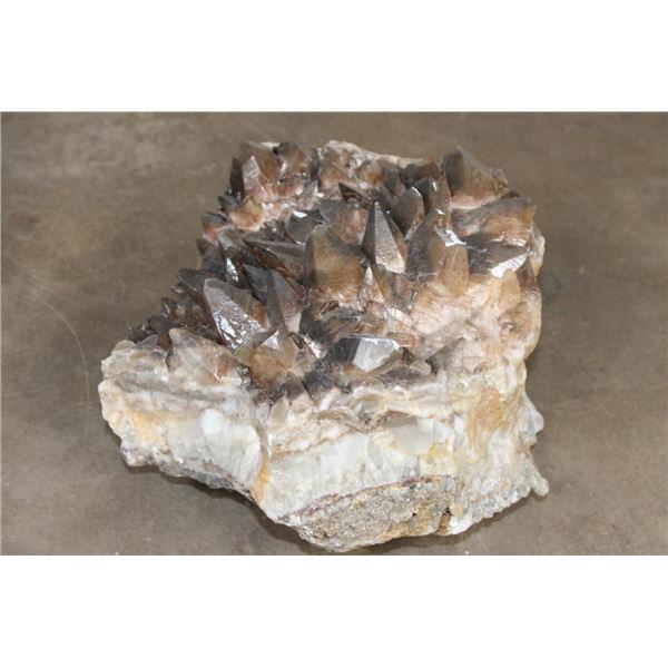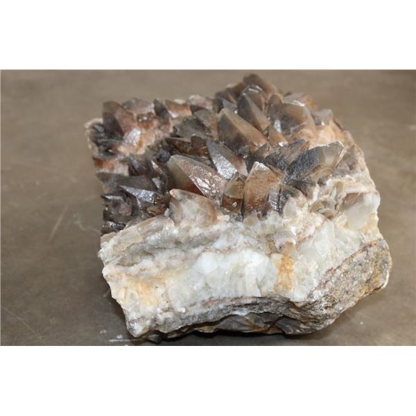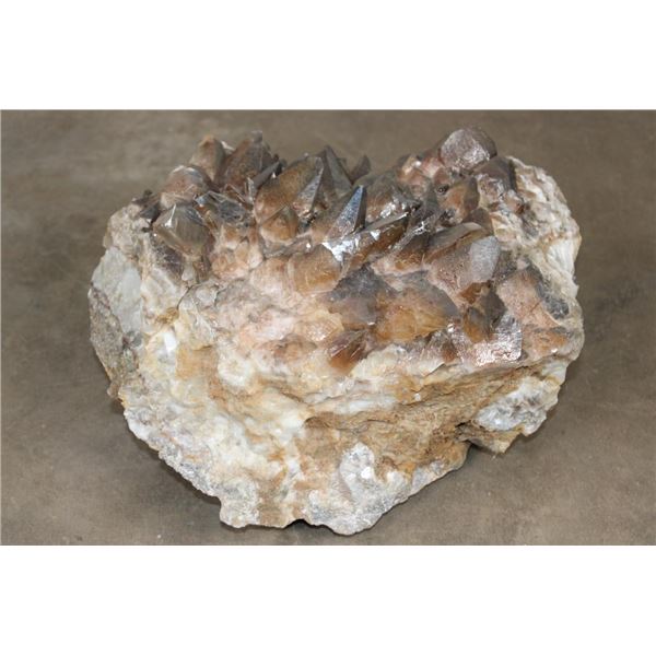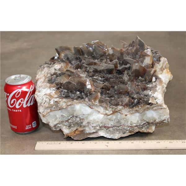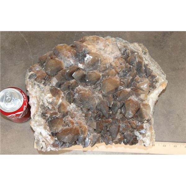 Big 39 lb 6 oz mostly Smokey with some Honey DOGTOOTH CALCITE Crystal Formation. This is a Natural and Raw Crystal Specimen. It measures 12.5" Long x 11" Wide x 7" Thick. Smokey honey calcite combines the nurturing qualities of honey calcite with the grounding strength of smoky quartz, promoting clarity and emotional balance. ROCKS MINERALS FOSSILS CRYSTALS