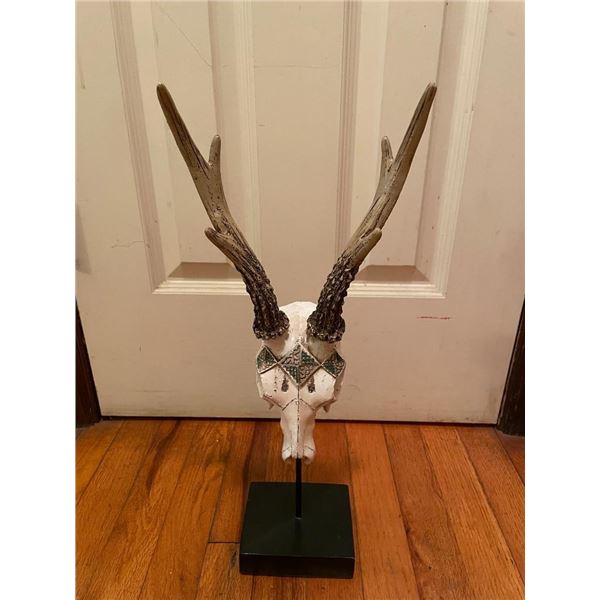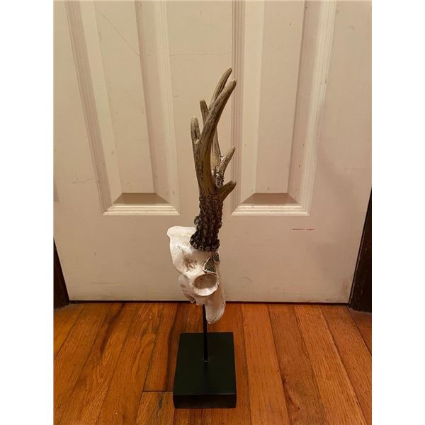 Great Reproduction ROE DEER Skull and Antlers on a Display Stand. It measures 19" Tall and is on a 4" x 5" Base. DECORATIVE TAXIDERMY