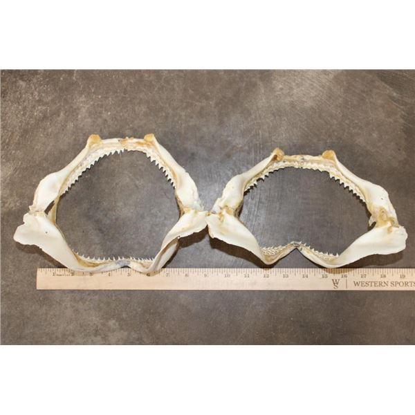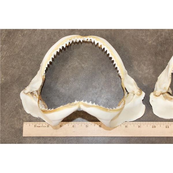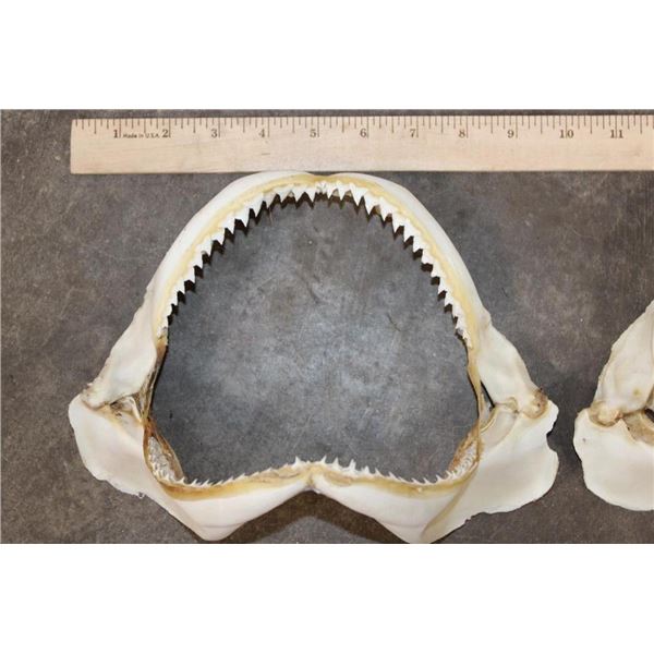 2 SHARK Jaws with sharp teeth. They measure 9.5" Wide x 7" Tall and 9" Wide x 6.5" Tall. (ONE$) TAXIDERMY