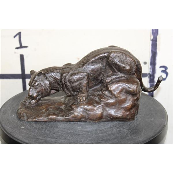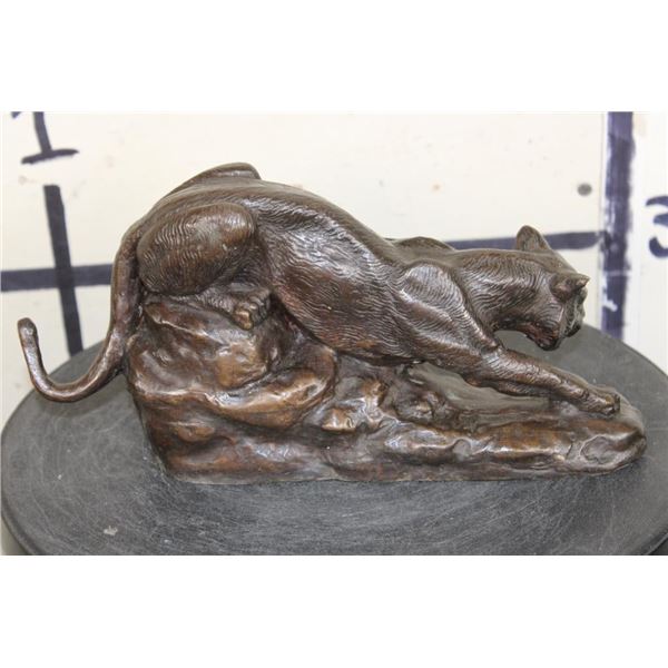 Creeping COUGAR BRONZE Sculpture. Total Weight 3 lbs 14 oz. It measures 5" Tall x 8.75" Long x 3" Wide. COLLECTIBLE ART BRONZE SCULPTURES
