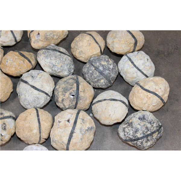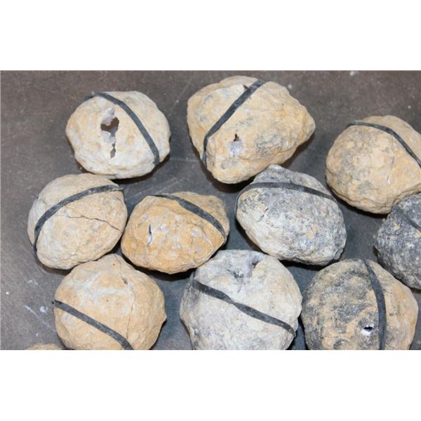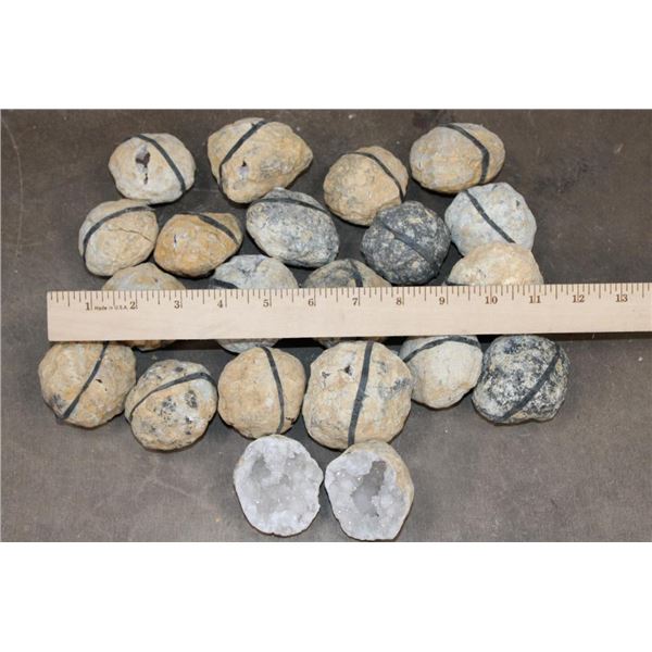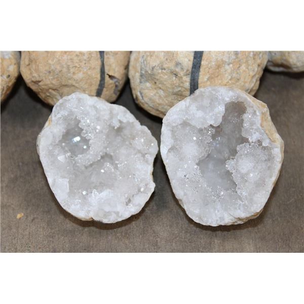 20 QUARTZ GEODES. Some are in 2 pieces and some are in 3 pieces. The Total Weight is 5 lbs 6 oz. Quartz geodes are valued for their ability to amplify energy, promote spiritual growth, and aid in manifestation and healing. (ONE$) ROCKS MINERALS FOSSILS CRYSTALS GEODES