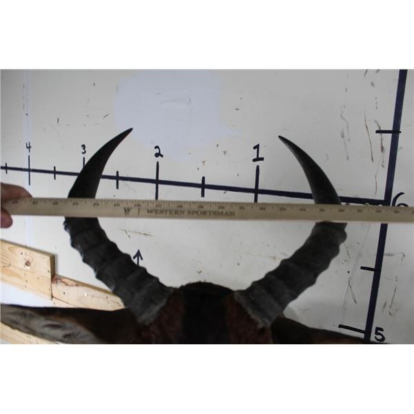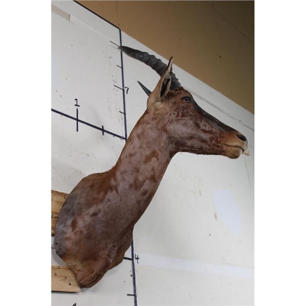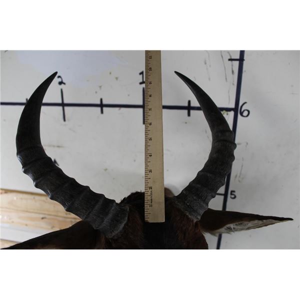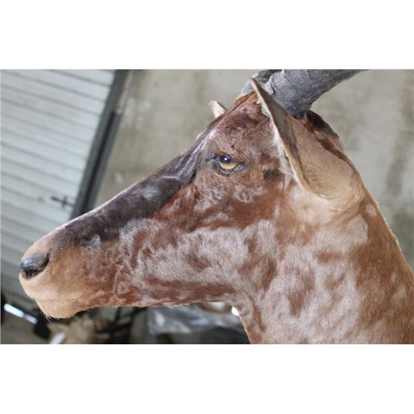 This TSESSEBE Shoulder Mount is looking to his left and in Good Condition. The right Horn measures approx. 15.25" Long and the Left Horn measures approx. 15 3/8" Long. TAXIDERMY