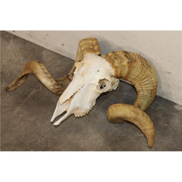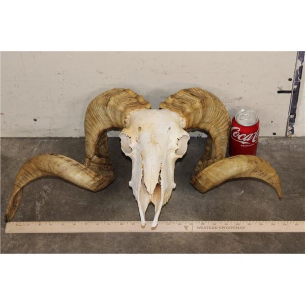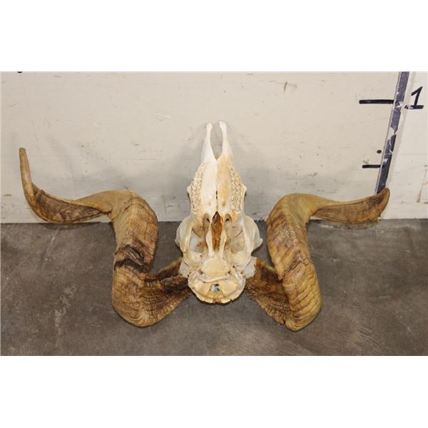 Nice and Big CORSICAN RAM Skull with All of its Teeth and a 23.5" Spread. TAXIDERMY