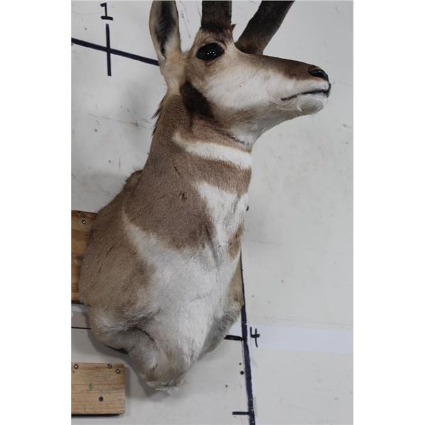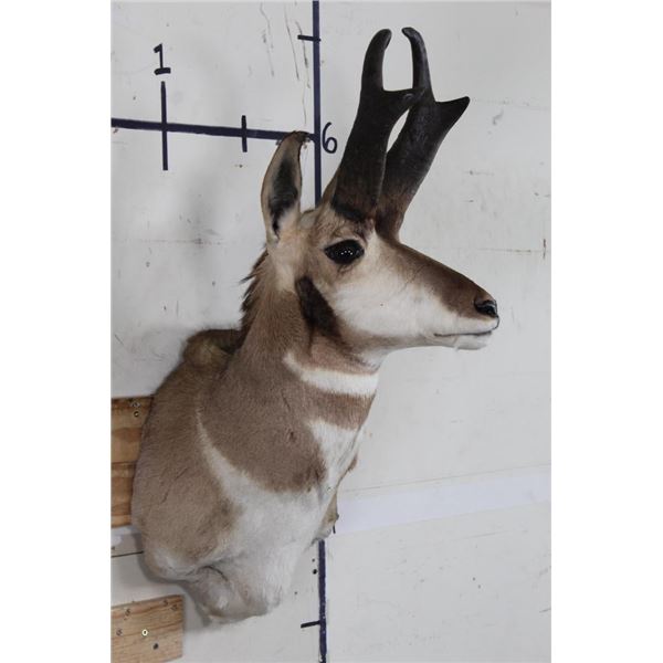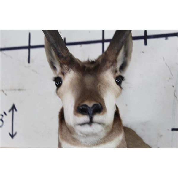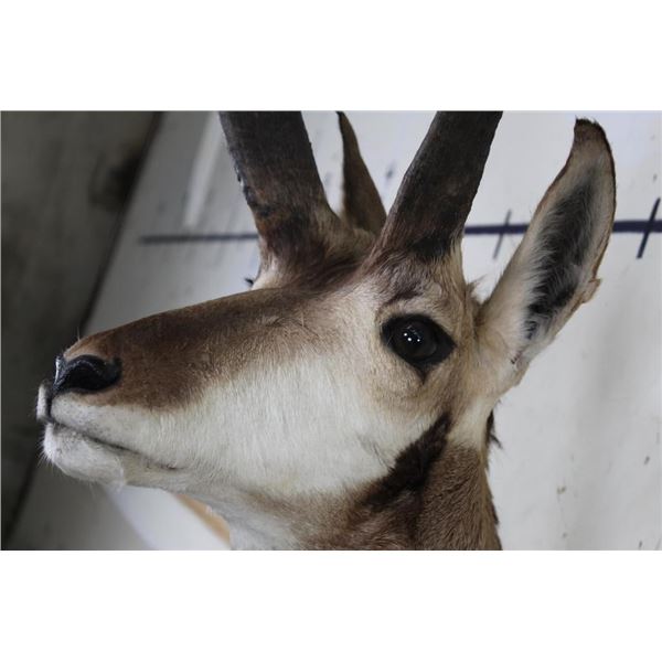 Very Good Condition for its age, PRONGHORN Shoulder Mount Looking to the left. Taken in 1982. Right Horn measures approx.13 1/8" Long and Left Horn measures approx. 12.5" Long. TAXIDERMY