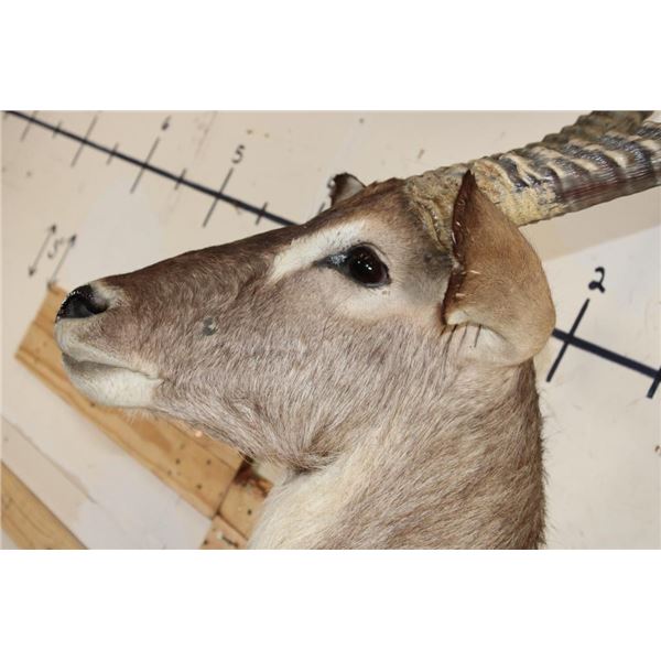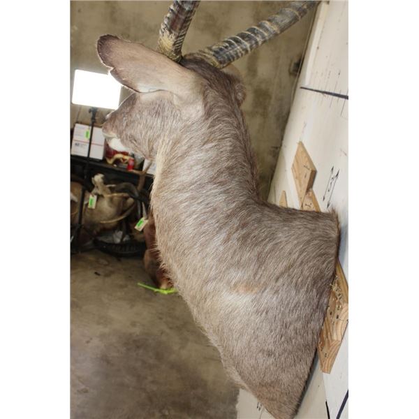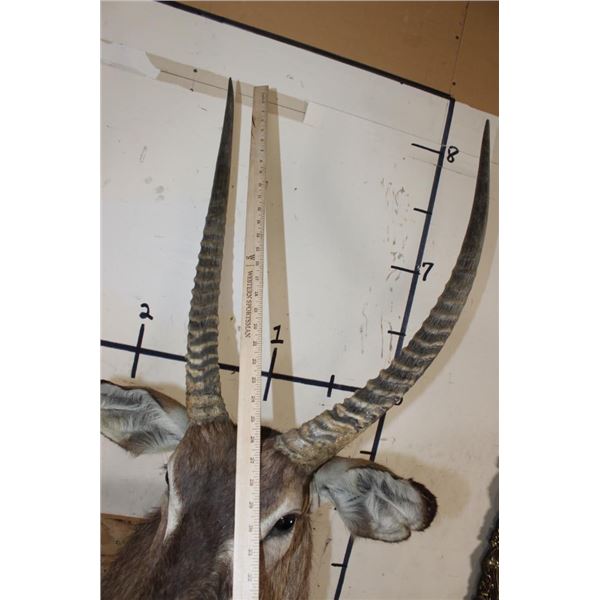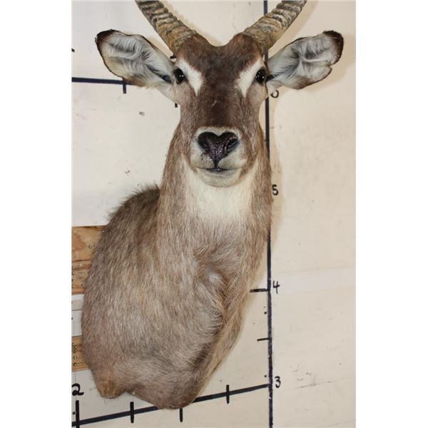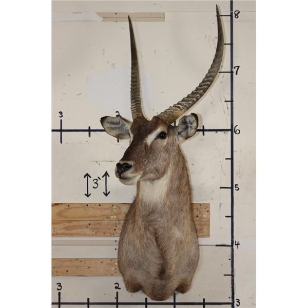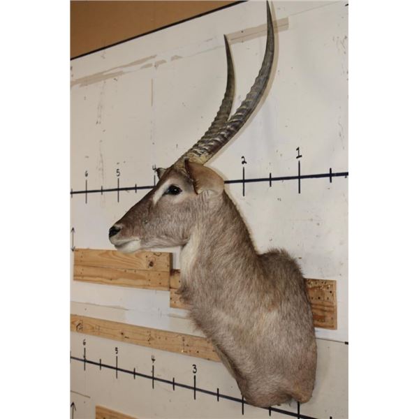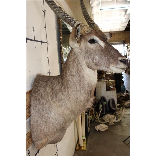 Very respectable WATERBUCK Shoulder Mount. The Left Horn measures 27.75" Long and the Right Horn measures 28" Long. The mount is in Good Condition. TAXIDERMY