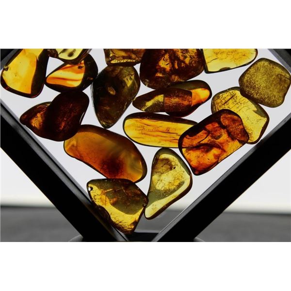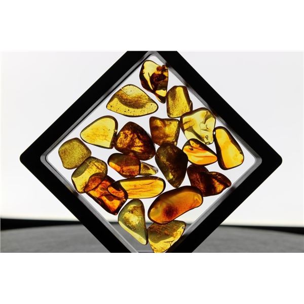 20 Pieces of Authentic "Baltic Gold" AMBER Fossil Gemstones. The Total Weight is 20.26 g. They have been UV tested and are reactive. Baltic Amber or "Baltic Gold" is fossilized tree resin that originated from ancient coniferous forests in the Baltic Sea region around 44 to 54 million years ago. These Specimens would be perfect for jewelry making. (ONE$) ROCKS MINERALS FOSSILS