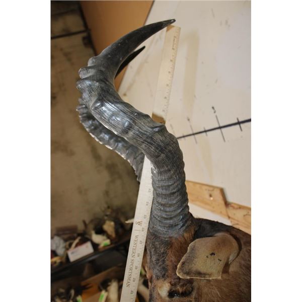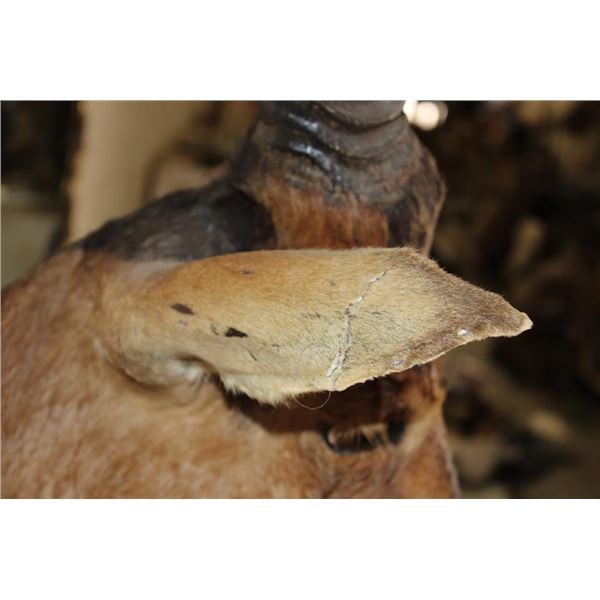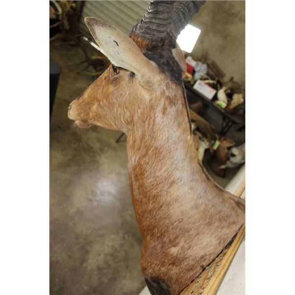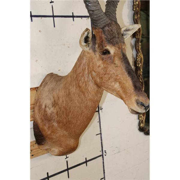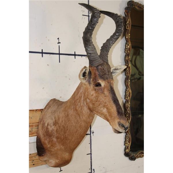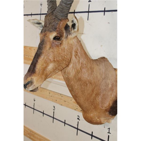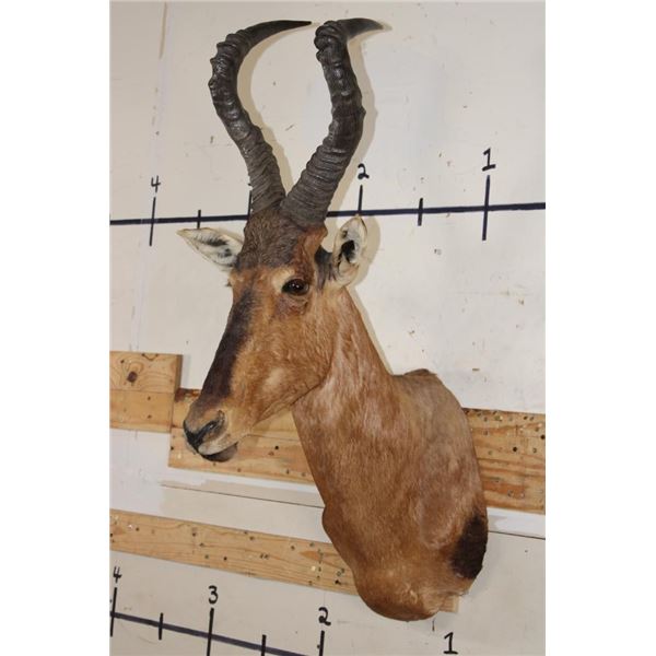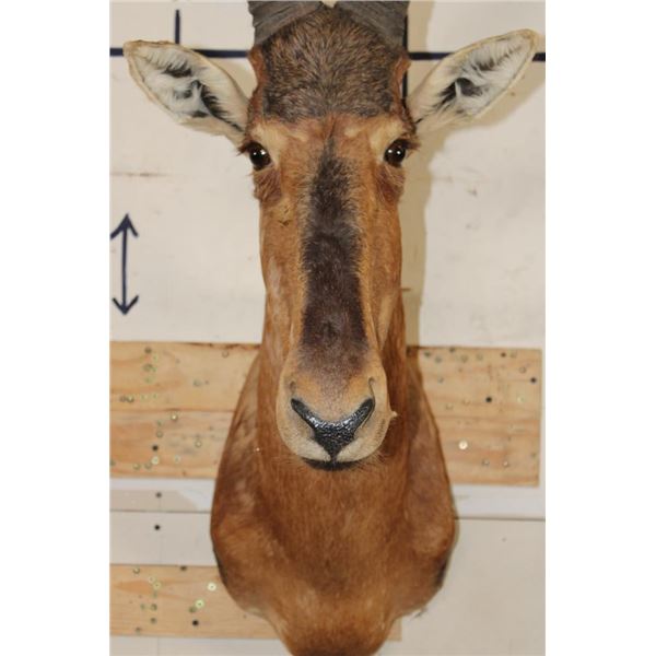 RED HARTEBEEST Shoulder Mount. There is minor left ear damage on visible on the back side. It is otherwise in Good Condition. TAXIDERMY