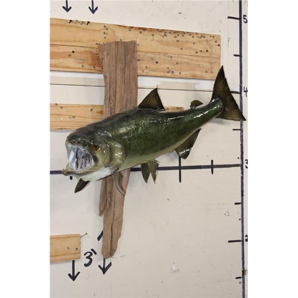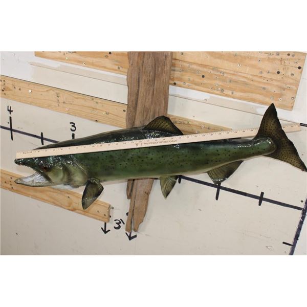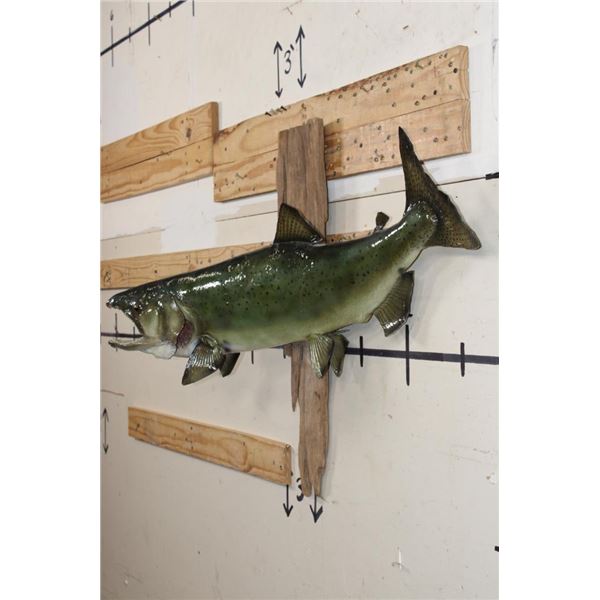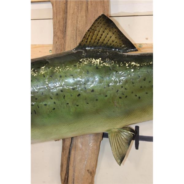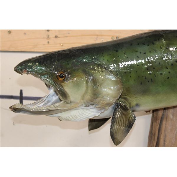 Nice Real Skin KING SALMON Fish Mounted on Driftwood. It measures 37.5" Long and is in Good Condition. TAXIDERMY FISH