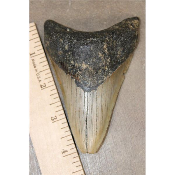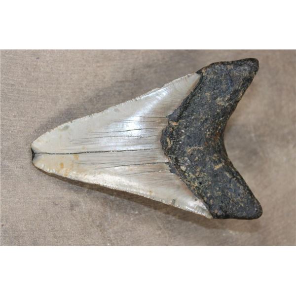 This is a Big Fossilized MEGALODON SHARK Tooth. It measures 4 1/8" Long x 2.75" Wide and Weighs: 152.52 g or 5.38 oz. This Megalodon Tooth is a well-preserved fossil, their fossilization process involved natural mineralization over millions of years. SHARK TOOTH FOSSILS