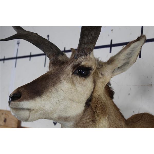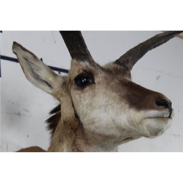 PRONGHORN Shoulder Mount with a freak, non-typical Horn Spread. It is an Older mount in Very Good Condition. TAXIDERMY