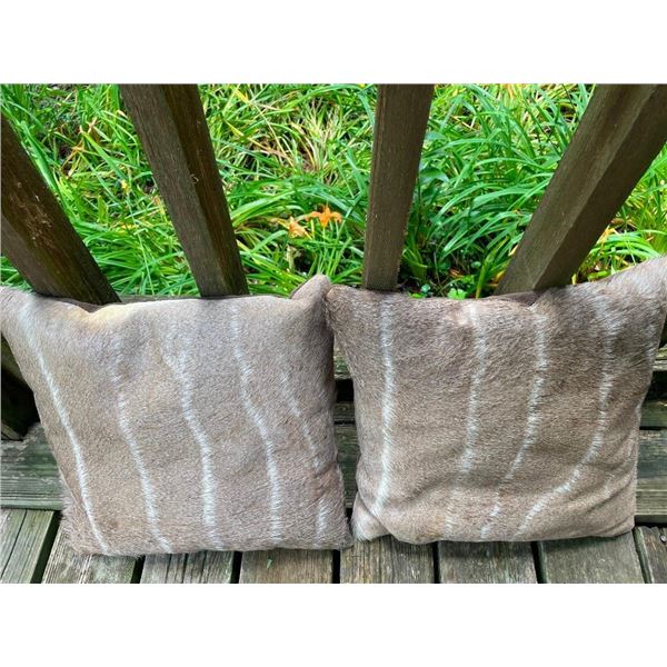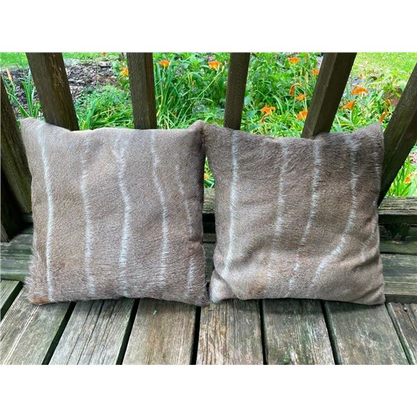 2 Big Throw PILLOWS hand-crafted from KUDU Hide. They measure 16" Tall x 16" Wide. These Pillows are beautiful and durable. Great exotic decor for your wild side! (ONE$) PILLOWS BEDDING AFRICAN TAXIDERMY DECOR
