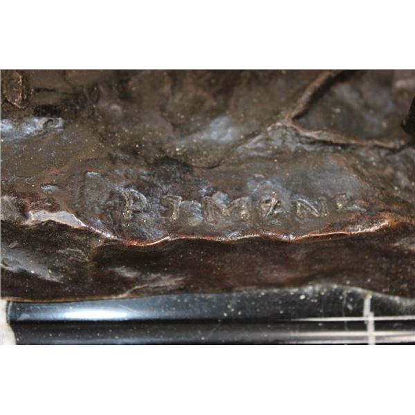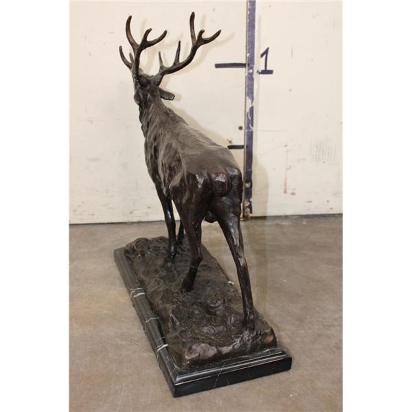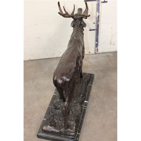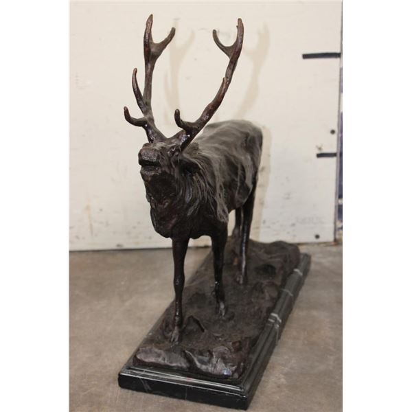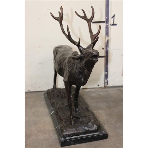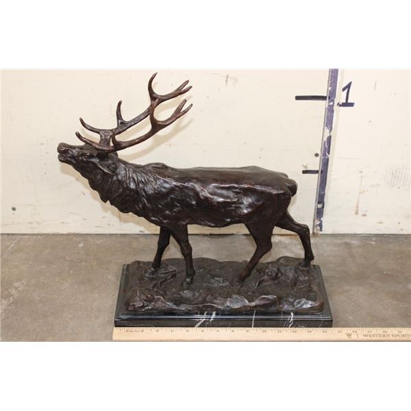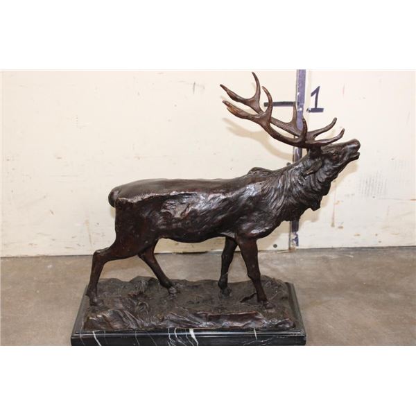 Bugling "ELK" Solid BRONZE Collectible Sculpture after Pierre Jules (P.J.) Mene (1810-1879). It is signed in the casting and is on a Marble Base. The Elk Sculpture measures 16" Tall x 14.5" Long x 6" Wide and Weighs 21 lbs 3 oz. COLLECTIBLE ART BRONZE SCULPTURES