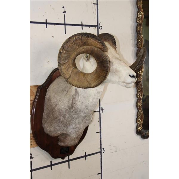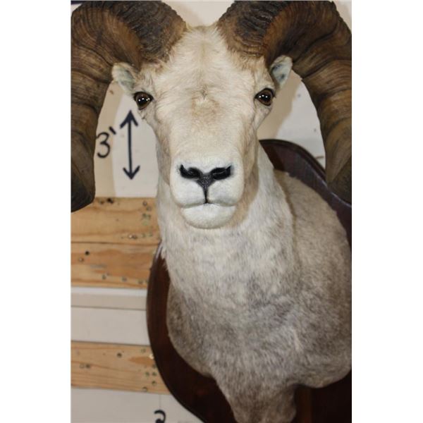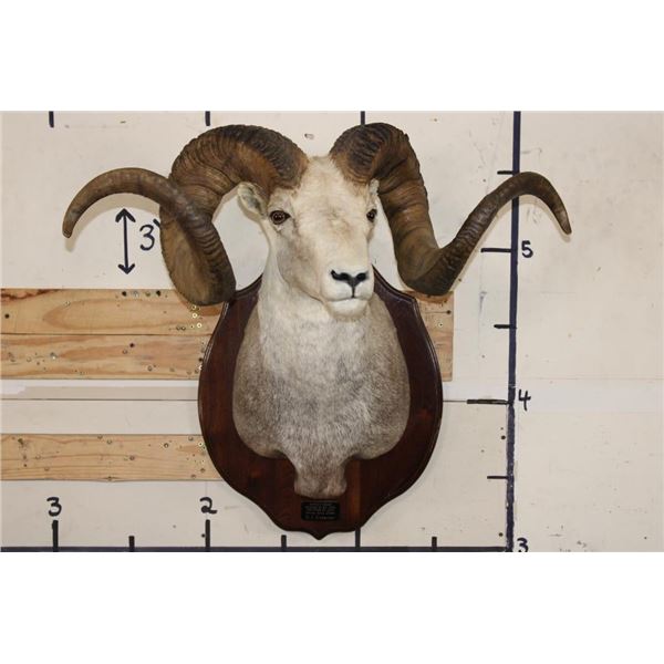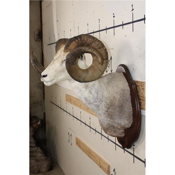 Very Nice and Clean STONE SHEEP Shoulder Mount. The Horns have been modified or lengthened with an additional and approximate 10" added to the end of both horns. The Left Horn measures 47.5" Long and 12" around the Horn Base. The Right Horn measures 47 5/8" Long and 11.75" around the Horn Base. This shoulder mount is in Very Good Condition. TAXIDERMY