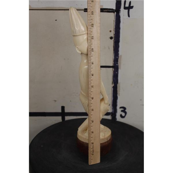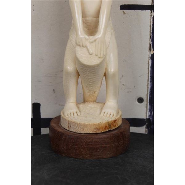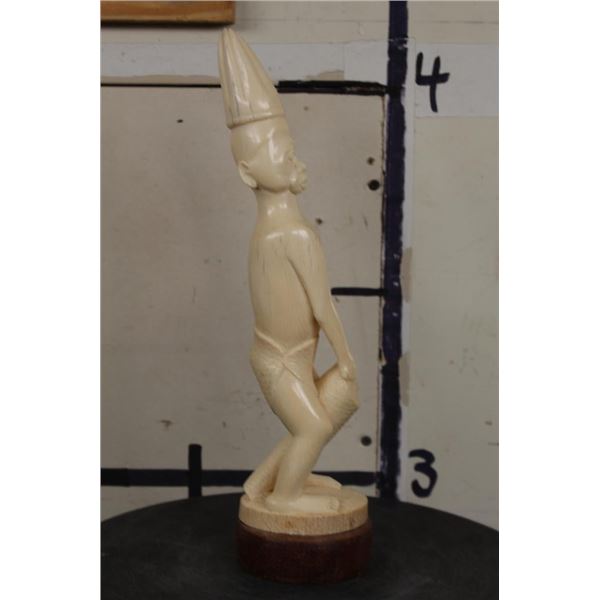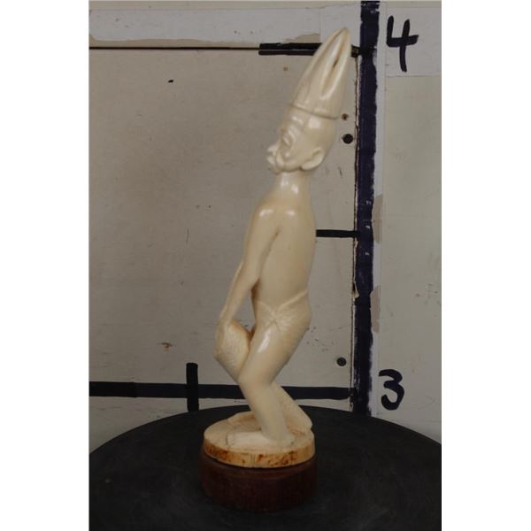 *TEXAS RESIDENTS ONLY*! Hand-carved African ELEPHANT IVORY Statue of a man playing a drum. The Ivory Carving measures 12.75" Tall x 3" Wide at the Base. The Total Statue measures 13.5" Tall including the circular Wood Base. The Total Weight is 2 lbs 4 oz. It was brought back from Nigeria. AFRICAN ART and ARTIFACTS