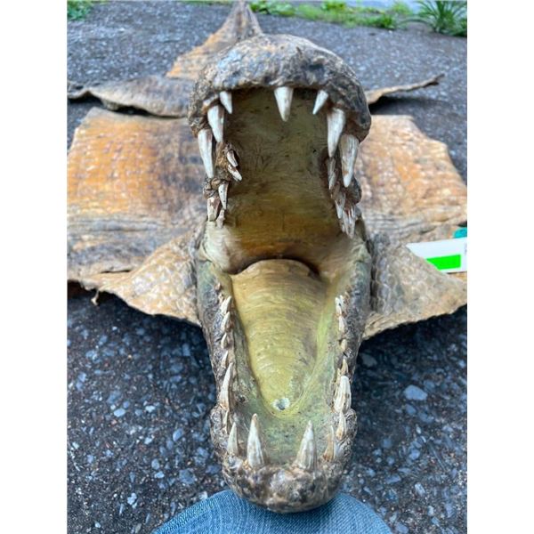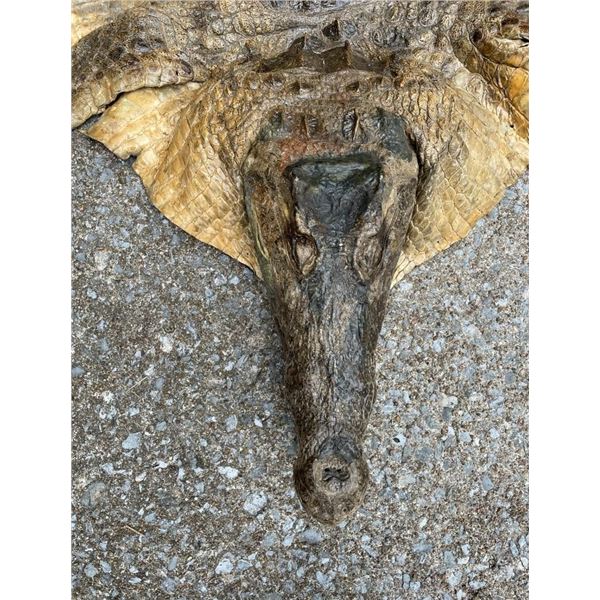 Awesome African NILE CROCODILE Hide with its head and all his feet. It measures almost 10' Long or 118" x 45" Wide (across the front legs) and 51" (across the rear legs). He has black felt under its Head. TAXIDERMY