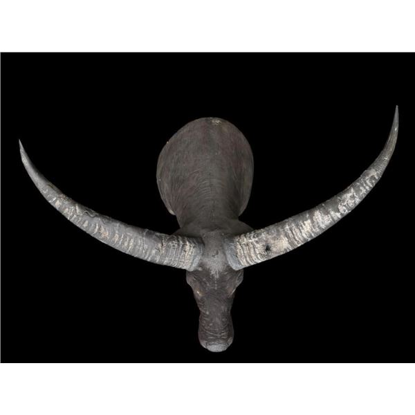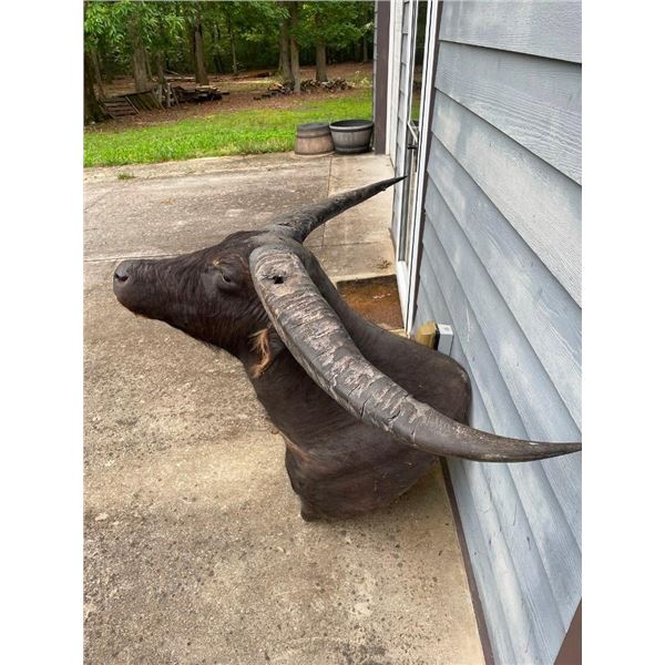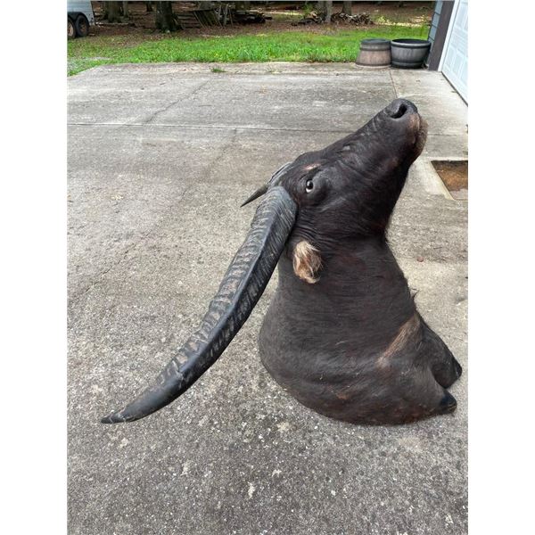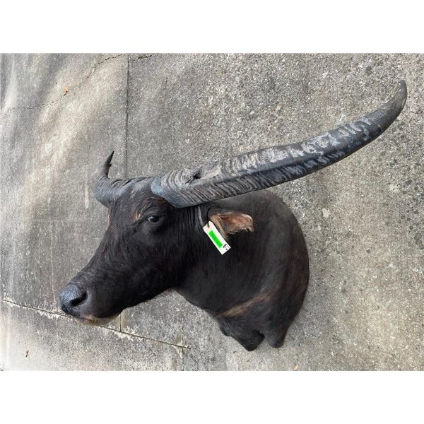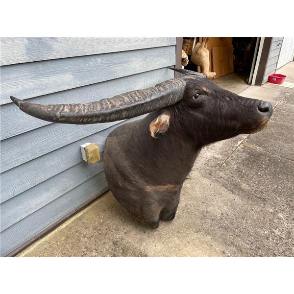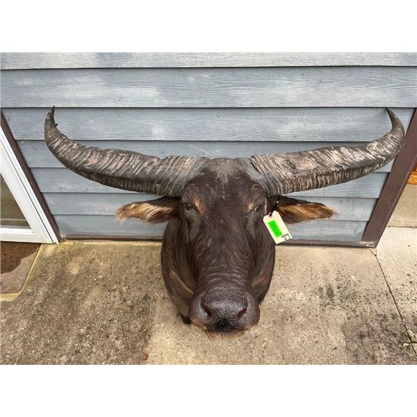 Monster sized AUSTRALIAN WATER BUFFALO Shoulder Mount. He has a 59" Horn Spread (from tip to tip). The Horns measure 41" Long and 37.5" Long and 16.5" around each Horn Base. Great TAXIDERMY
