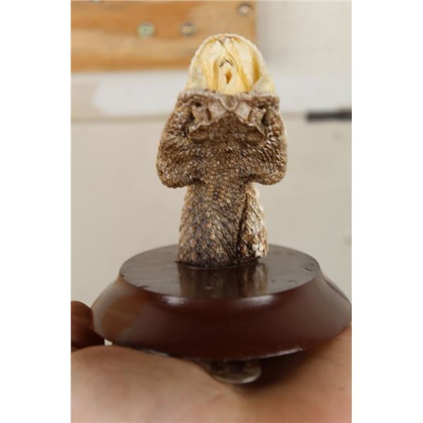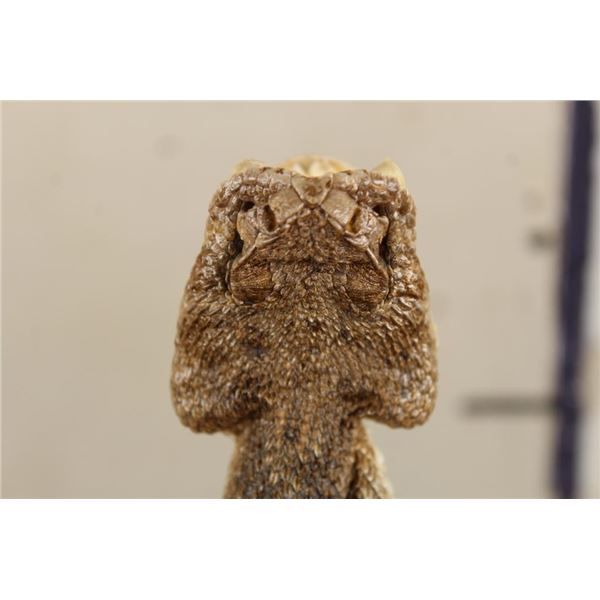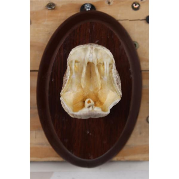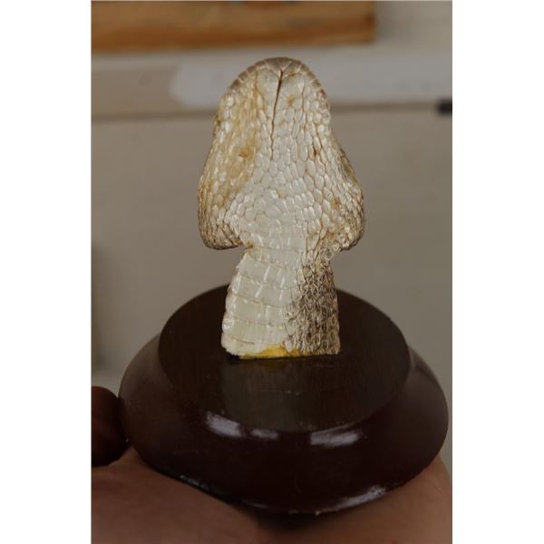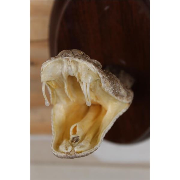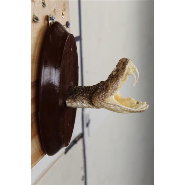 BIG Mounted Western Diamondback RATTLESNAKE Head or Shoulder Mount with 3 Fangs! Double Fangs on Left. The Wooden Plaque measures 6.25" Long x 4.5" Wide x 4.5" Depth. Head measures 2.5" Wide and the Plaque has a wall hanger. TAXIDERMY