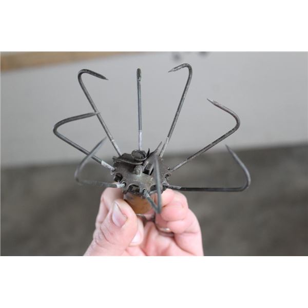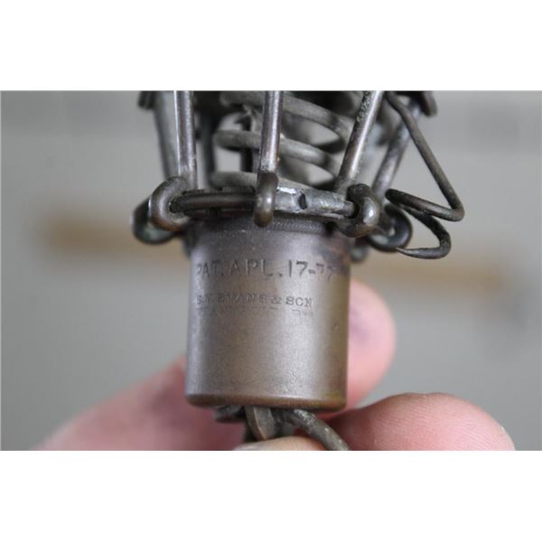 Antique and *Rare* S.W. Evans & Son CLAW FISH TRAP in Very Good working Condition. This is an "Eagle Claw" Spring loaded snare or fish trap patented in 1877. It has 8 hooks that spring closed once the trigger is tripped. It was made in Frankfort, PA. and measures 5" Long x 2.5" Wide. COLLECTIBLE HUNTING FISHING TRAPS