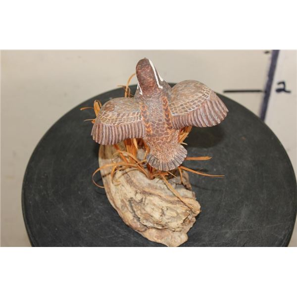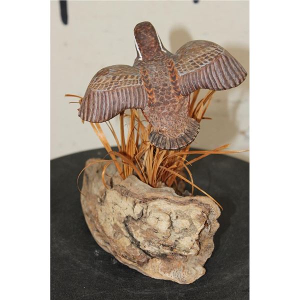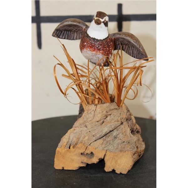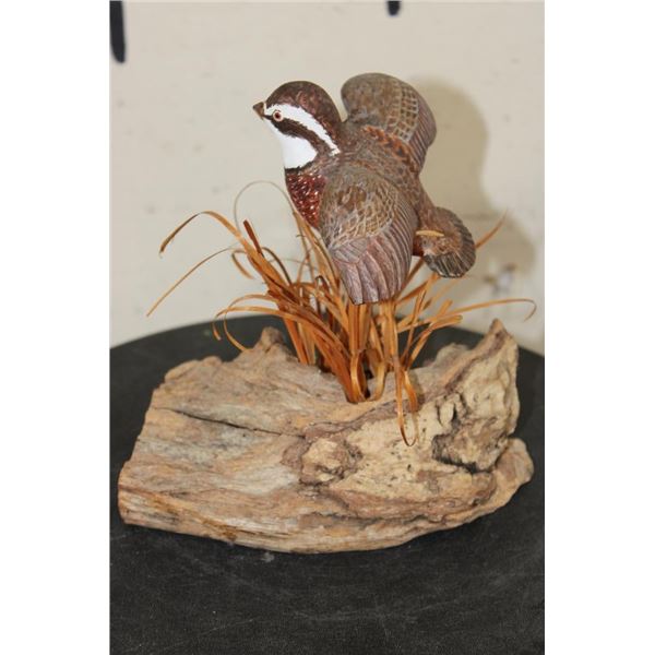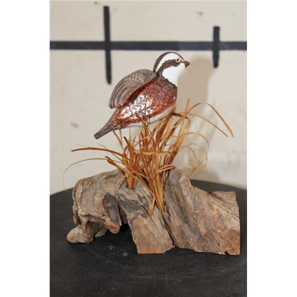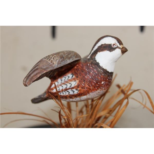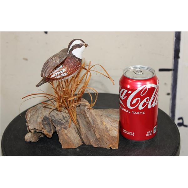 Wood Quail Carving Signed by Artist "Bo Jones" or "BD Jones". It measures 6.5" Long x 5.5" Wide x 7" Tall and Weighs: 10 oz. COLLECTIBLE TAXIDERMY ART