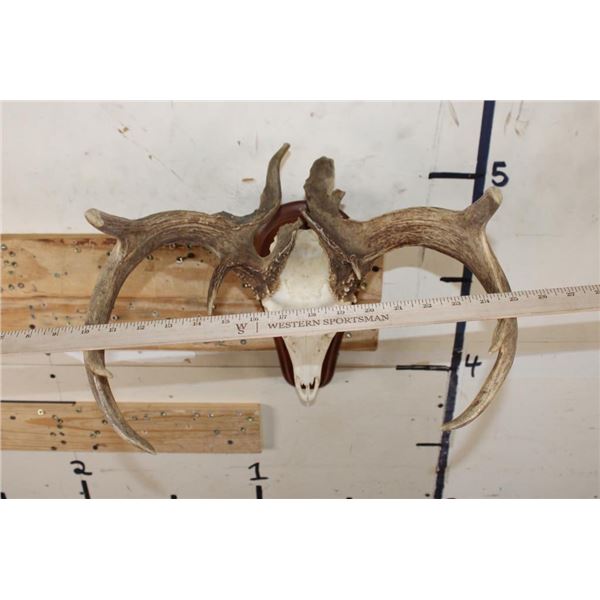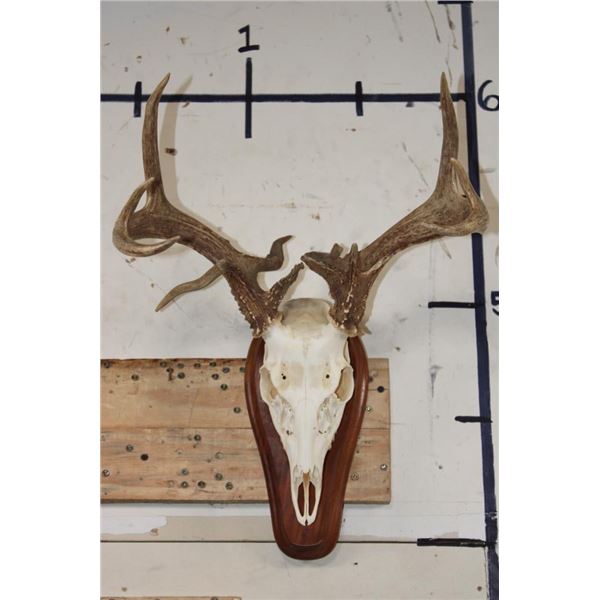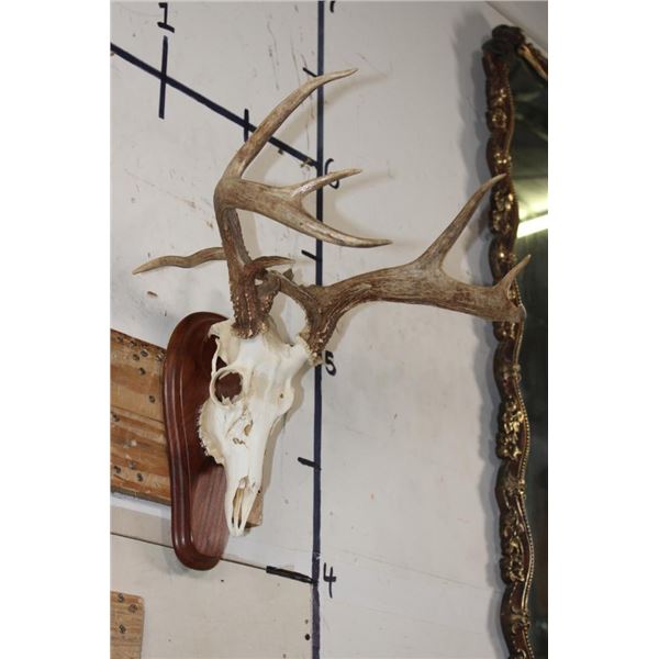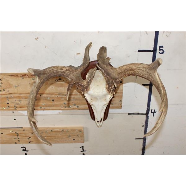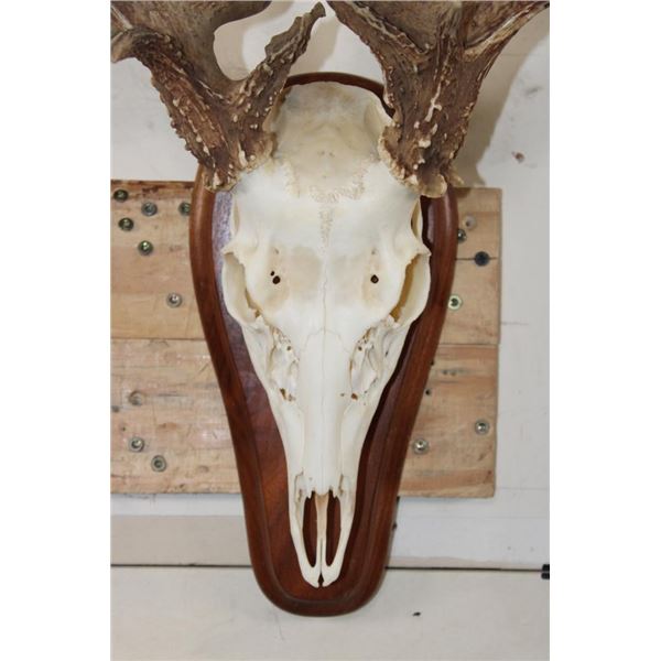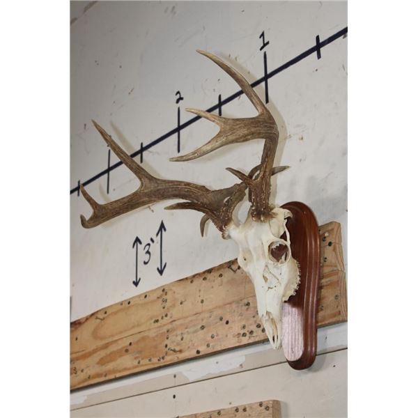 Nice 13-Point WHITETAIL DEER Skull on a Wood Plaque. It has a 16" Spread. TAXIDERMY