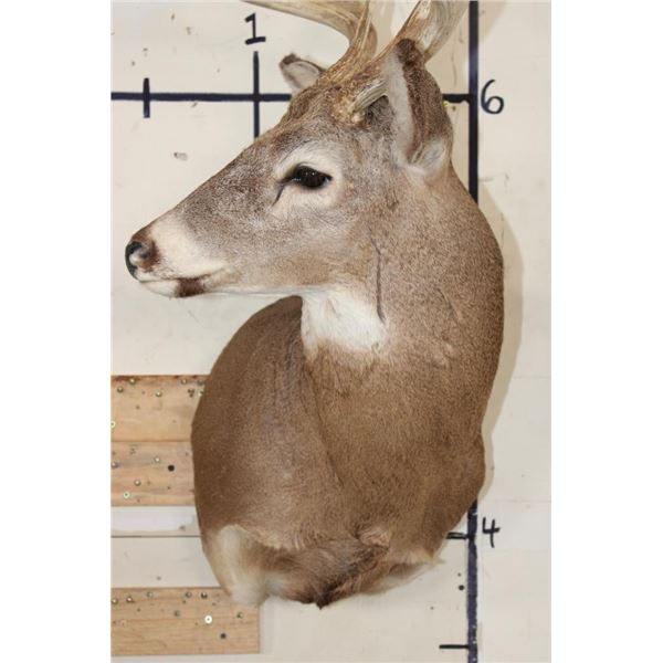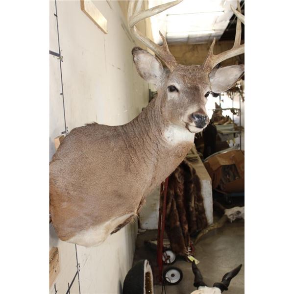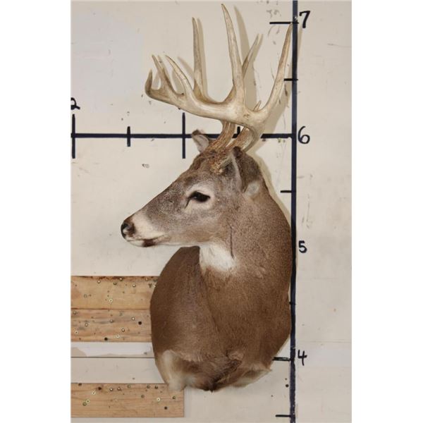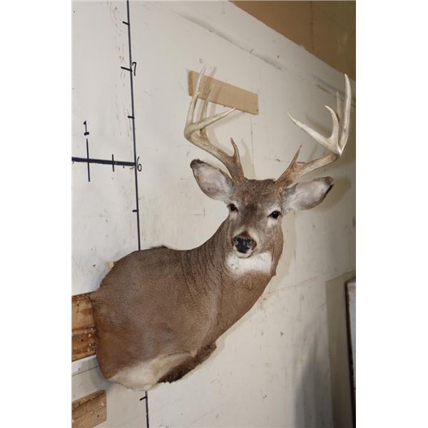 10-Point WHITETAIL DEER Shoulder Mount with an 18" Spread in Good Condition. TAXIDERMY