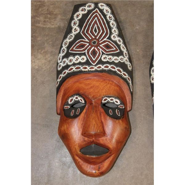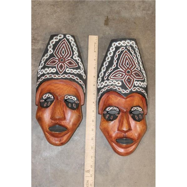 2 Hand-carved and Hand-painted Indonesian Tribal MASKS. They measure 12.5" Tall x 6" Wide (each). (ONE$) COLLECTIBLE ASIAN ARTIFACTS