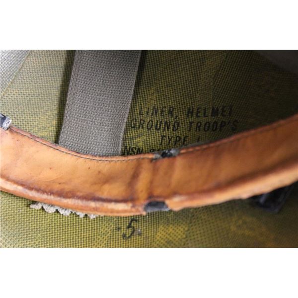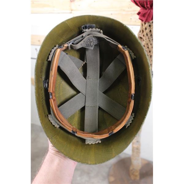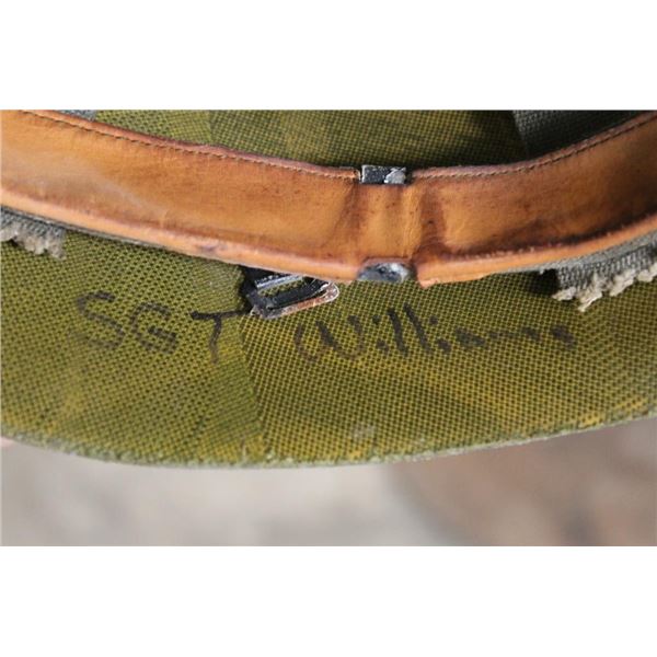 Post WW2 U.S. Issue M1 Helmet Liner. "Named" with handwritten "SGT Williams" inside. The head band is intact with a printed label "STEINBERG BROS, INC." COLLECTIBLE MILITARIA