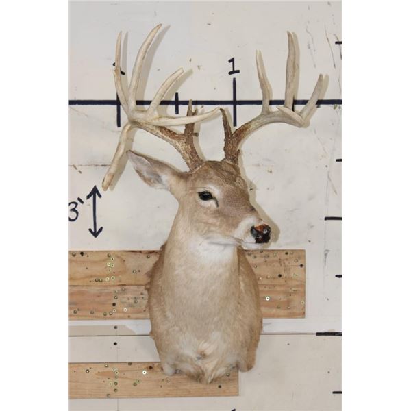12-Point WHITETAIL DEER Shoulder Mount with a 17.25" Spread and a drop tine. TAXIDERMY