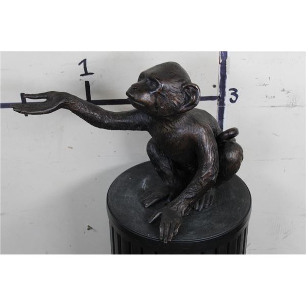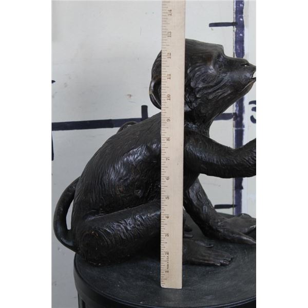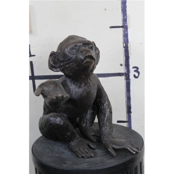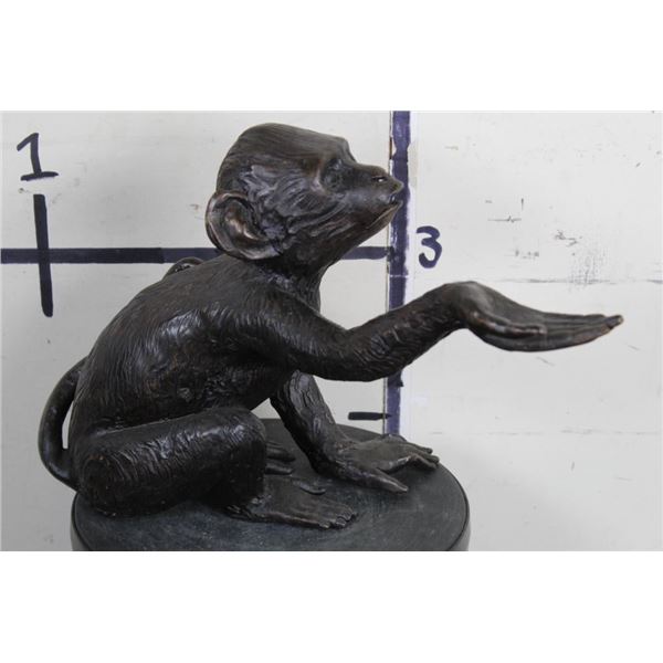 Adorable MONKEY BRONZE Sculpture. He is reaching out his hand. It measures 12.5" Tall x 10.5" Wide x 19" Depth and the Total Weight is 11lbs 12oz. COLLECTIBLE ART BRONZE SCULPTURE