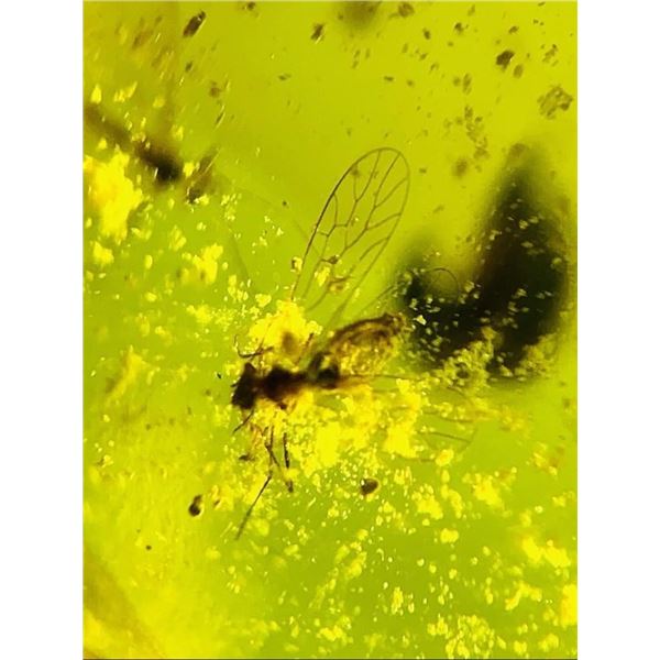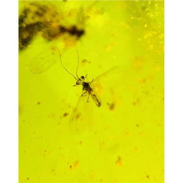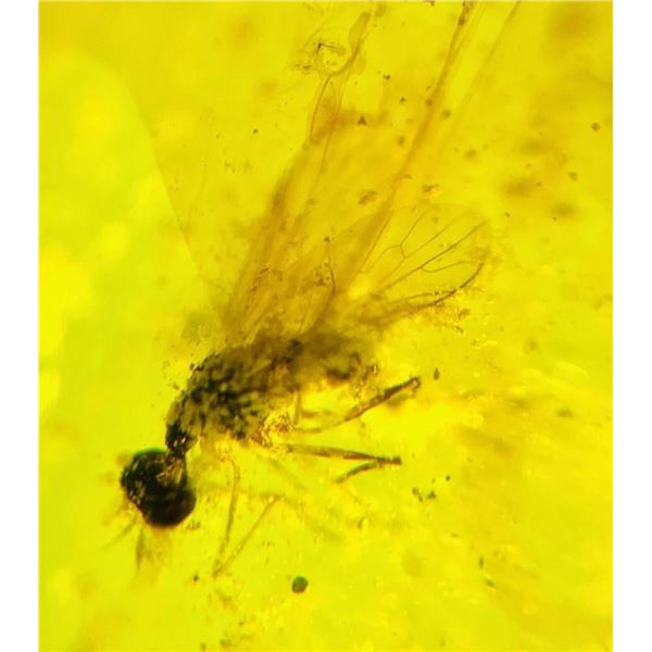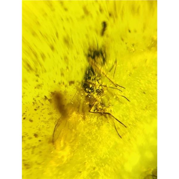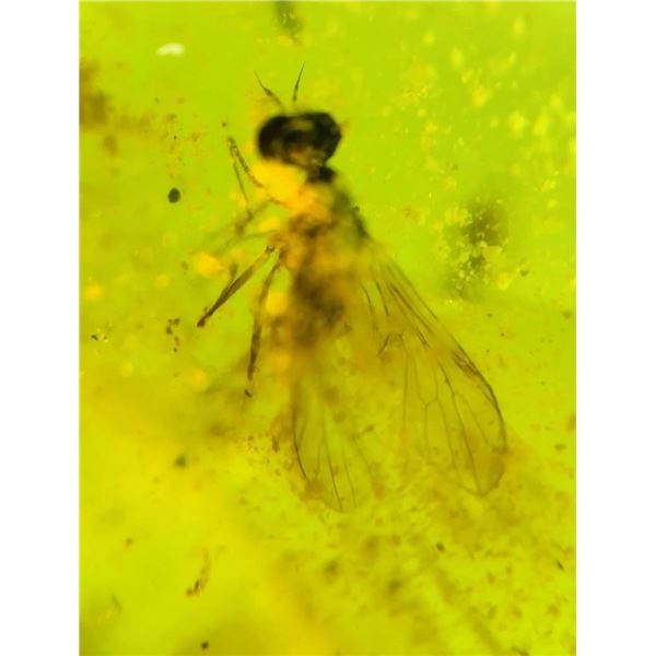 Authentic Myanmar AMBER Fossil Plant Resin with a Horsefly Inclusion. It measures approximately 1.2" Long x 0.5" Wide x 5/16" Thick and the Total Weight is 2.06 g or 10.3 ct. This Specimen has fine color and clarity, it has been UV Tested and is Reactive. It comes in a 2.75" x 2.75" Display Case. Burmese Amber from Myanmar is about 100 million years old and come from the Cretaceous period. Burmese amber is witness of rapid origination and radation of moder insect groups. ROCKS MINERALS FOSSILS