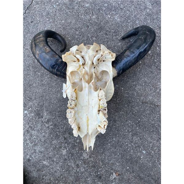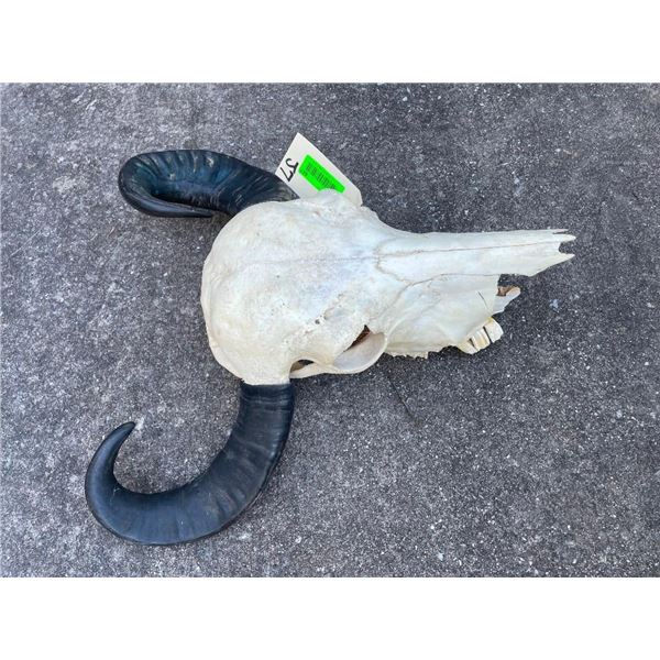 Asian WATER BUFFALO Skull with most of its teeth. The Horns measure 22.5" Long and 19.5" Long. The Total Skull measures 20" Wide (at the widest point) x 15.5" Long overall. TAXIDERMY