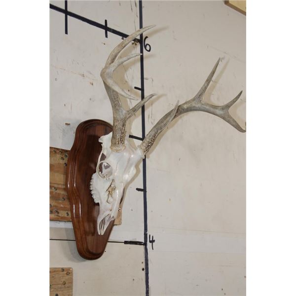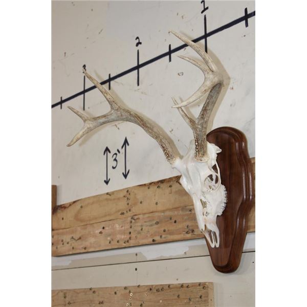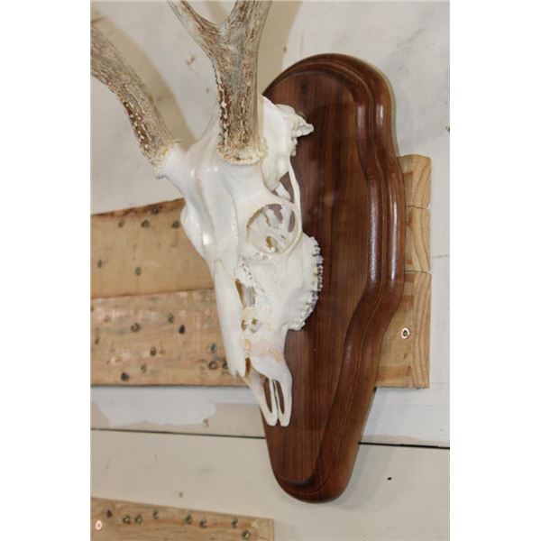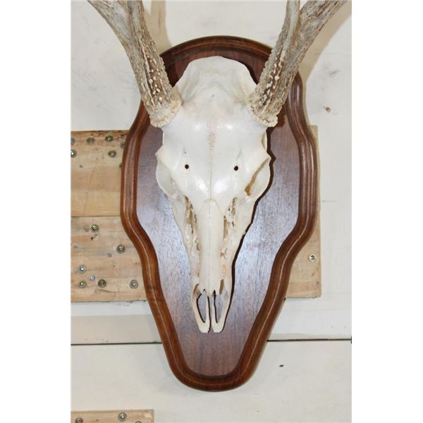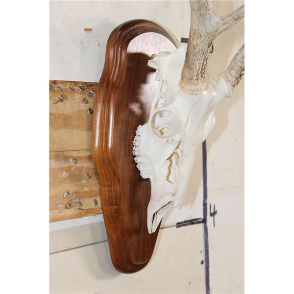 8-Point WHITETAIL DEER Skull on a Wooden Plaque. It has All its Teeth and an 18.25" Spread. TAXIDERMY