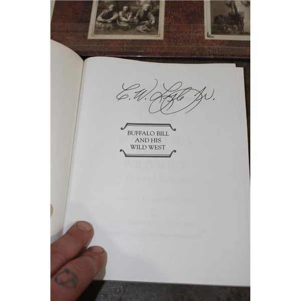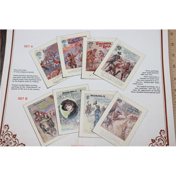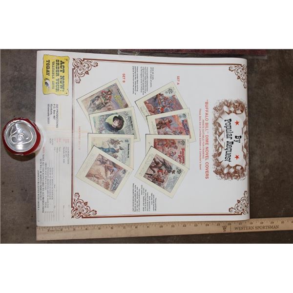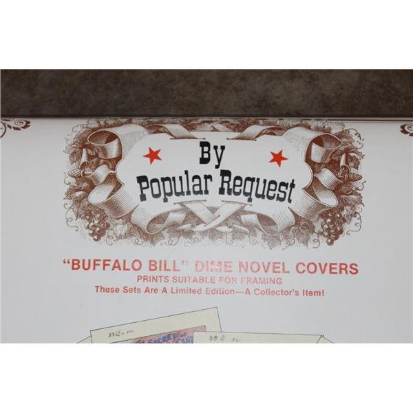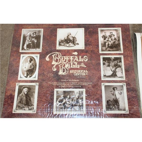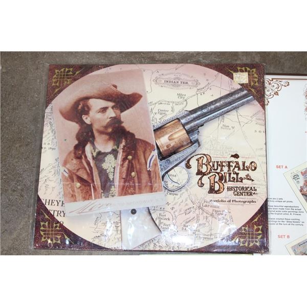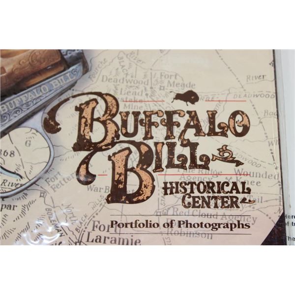 3 Buffalo Bill themed items! "Buffalo Bill and his Wild West: A Pictorial Biography" Book by Joseph G. Rosa and Robin May 1989. Portfolio of 8 Buffalo Bill 13" x 15" Photographs suitable for framing. 8 Limited Edition Buffalo Bill Dime Novel Covers. These all appear to be from the Buffalo Bill Historical Center in Cody, Wyoming. WESTERN COWBOY COLLECTIBLES