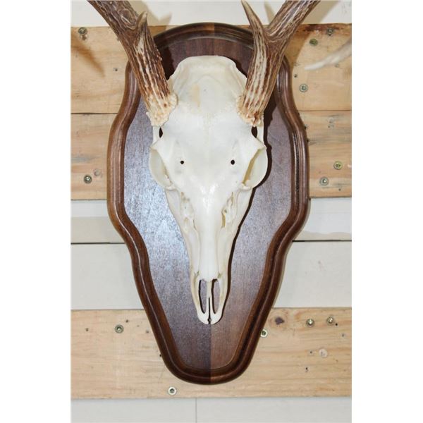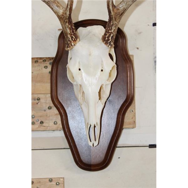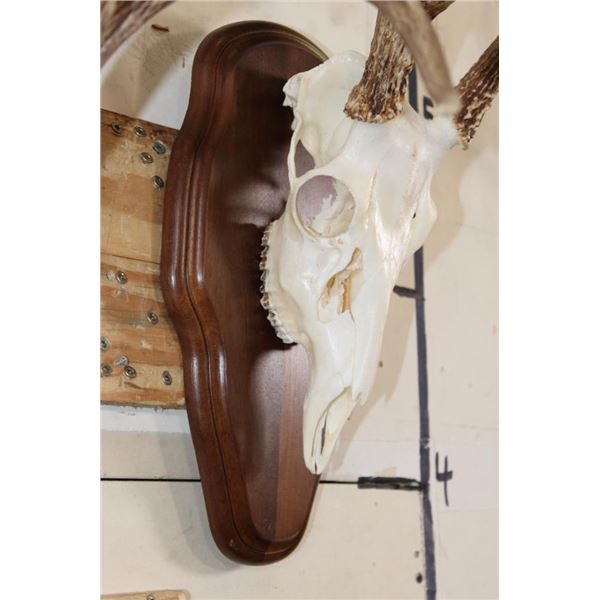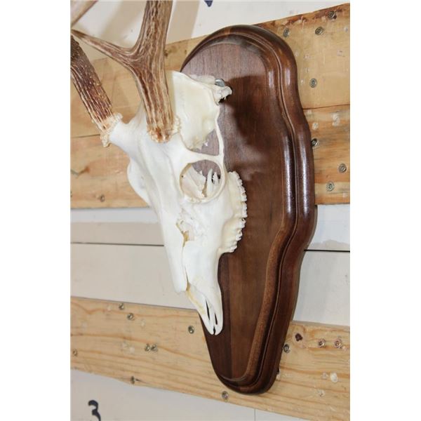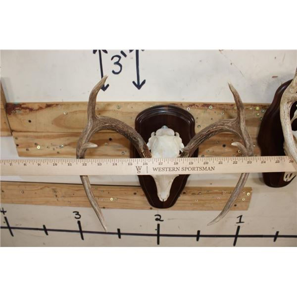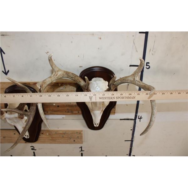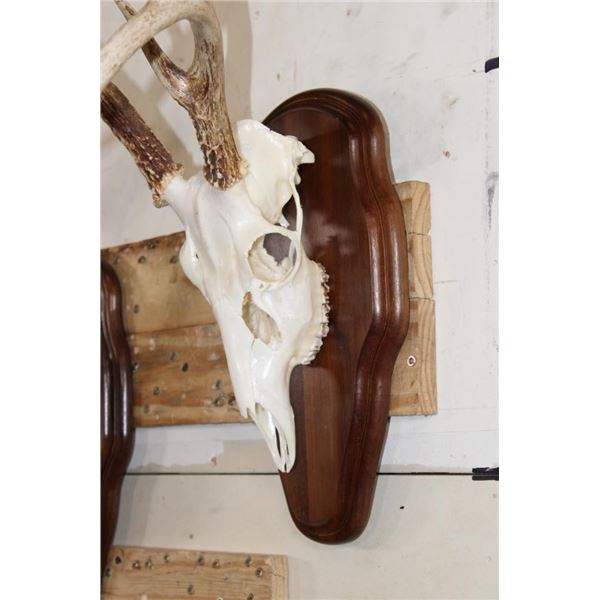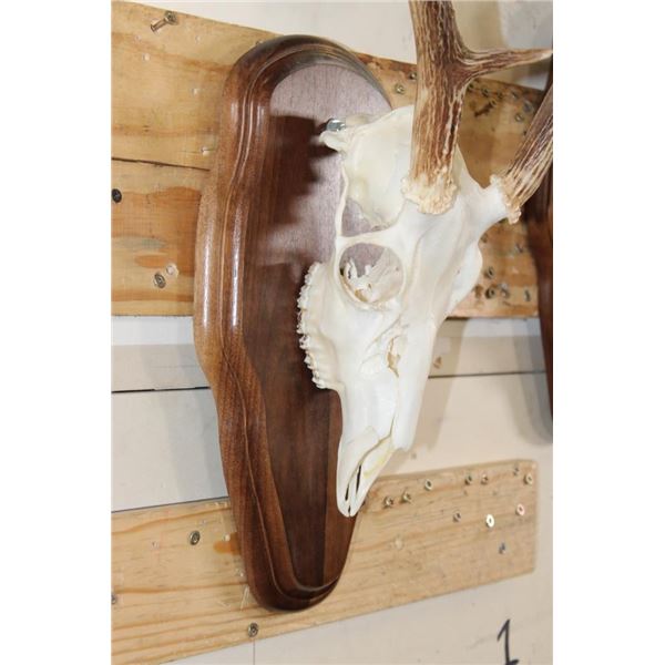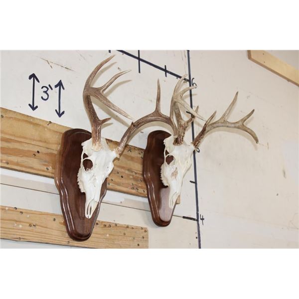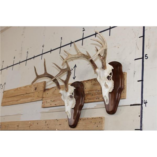 2 WHITETAIL DEER Skulls on Matching Wooden Plaques. They are 8-Points each and both have All their Teeth. They have 13" and 14" Spreads. (ONE$) TAXIDERMY