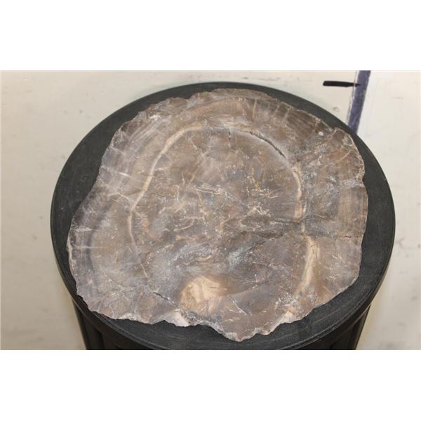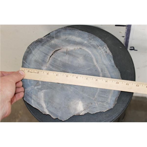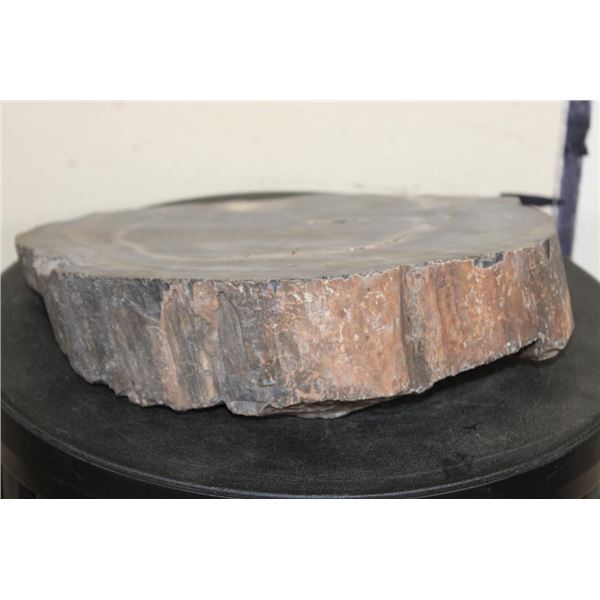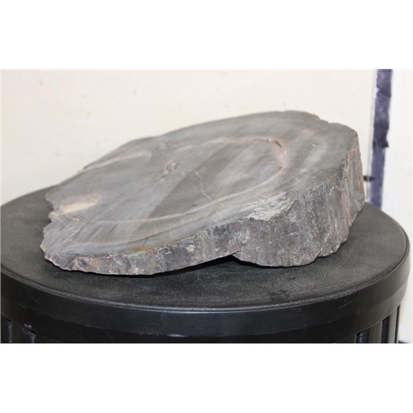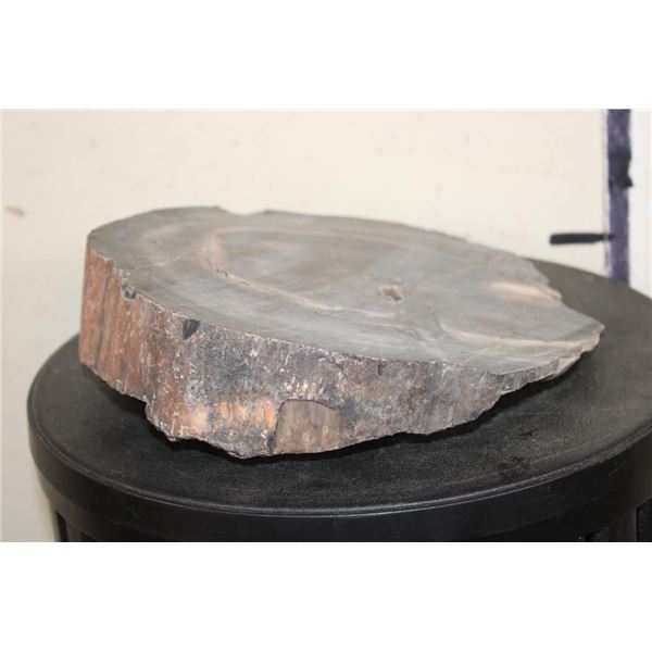 1 hardy Fossilized Petrified Wood Slice. It measures 10.5" Long x 9.25" Wide x 2.5" Thick (at thickest point, it is wedge shaped. Petrified or fossilized wood is special because it provides a unique 3 dimensional record of ancient forests, preserving intricate details of the original trees. ROCKS MINERALS FOSSILS