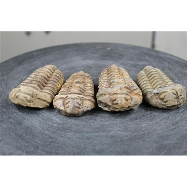 4 Trilobite "Diacalymene" FOSSILS from the Morocco. These trilobites are between 380-410 Million Years Old. They measure 3" to 3.5" Long x 2" to 2.5" Wide (ONE$). ROCKS FOSSILS MINERALS