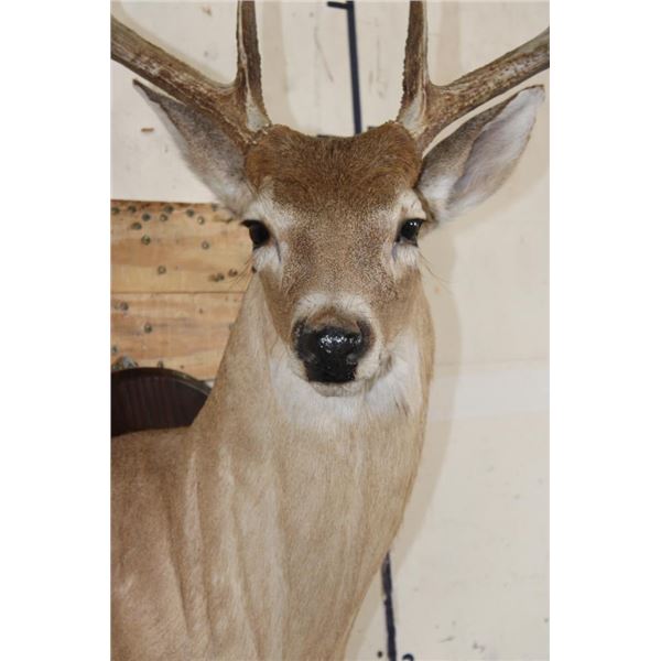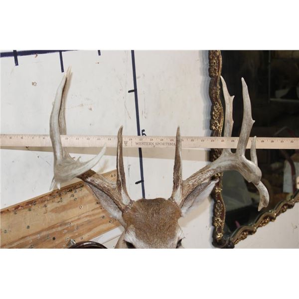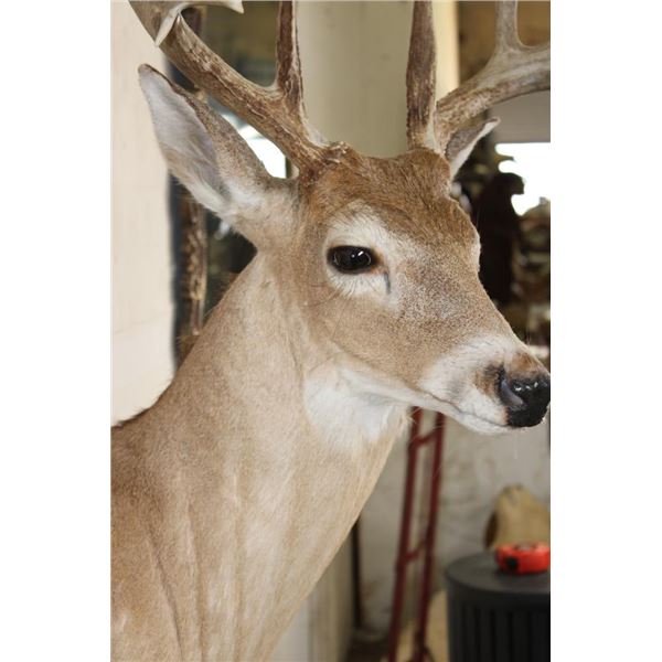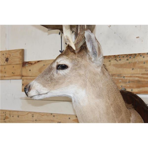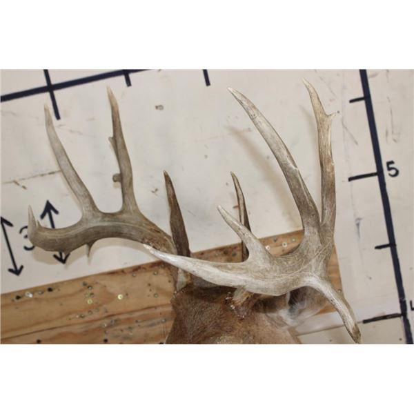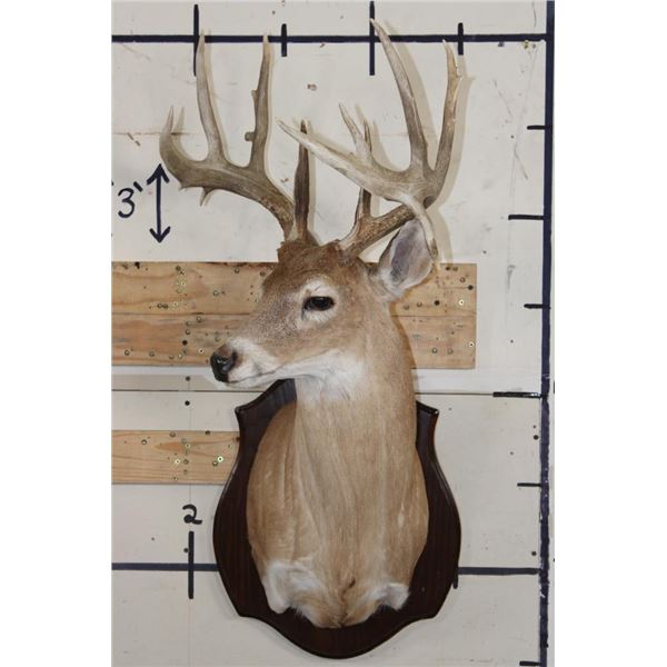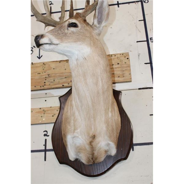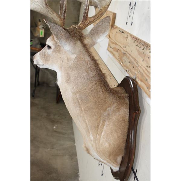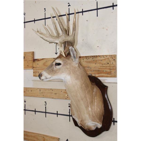 Nice 11-Point WHITETAIL DEER Shoulder Mount with a Drop Tine on a Wooden Plaque. It is in Good Condition. TAXIDERMY