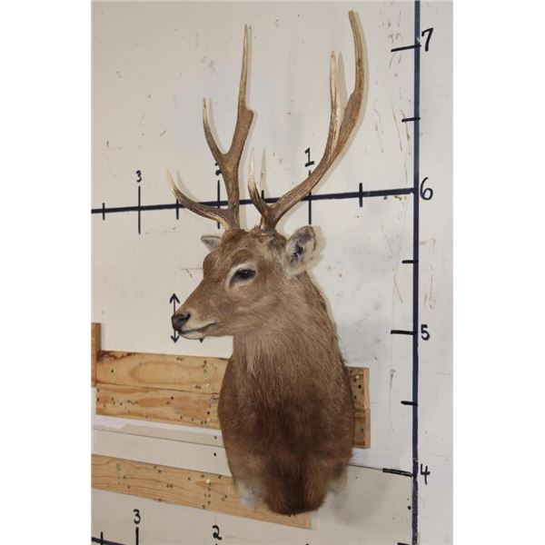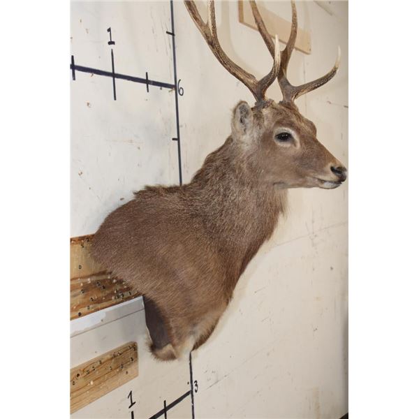 Nice and Big SIKA DEER Wall Pedestal with a Heavy Rack. It is in Good Condition. TAXIDERMY