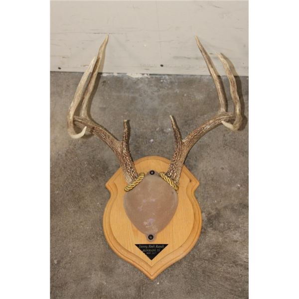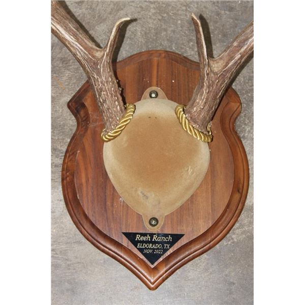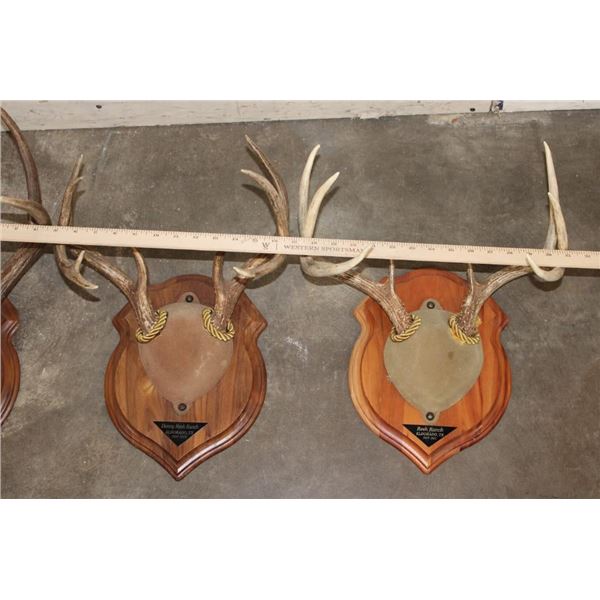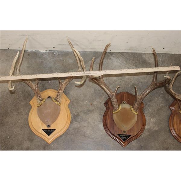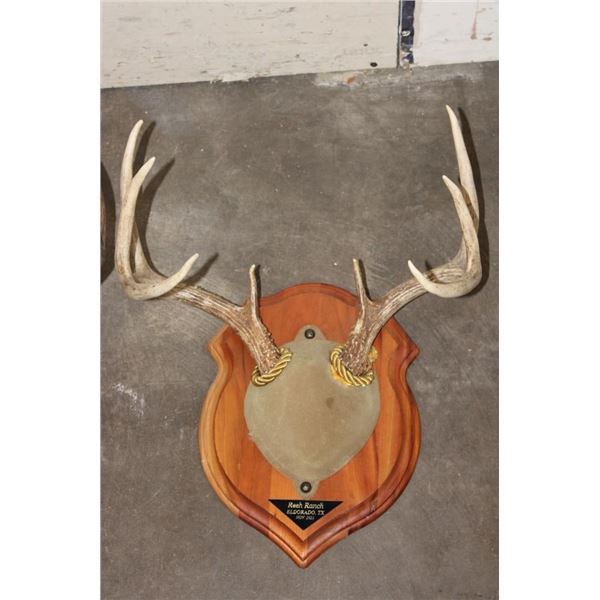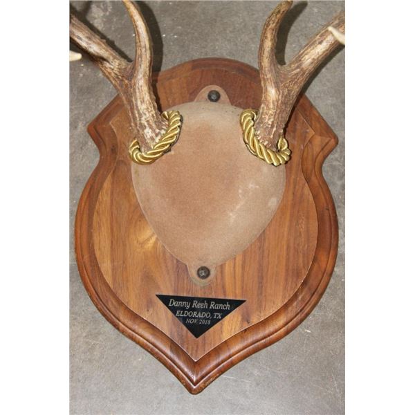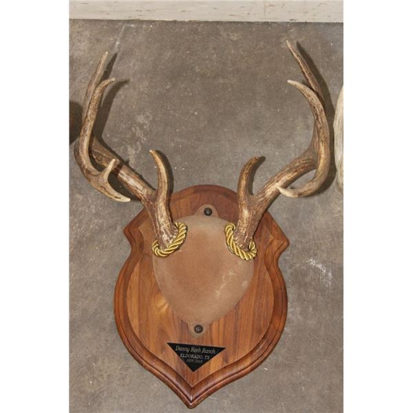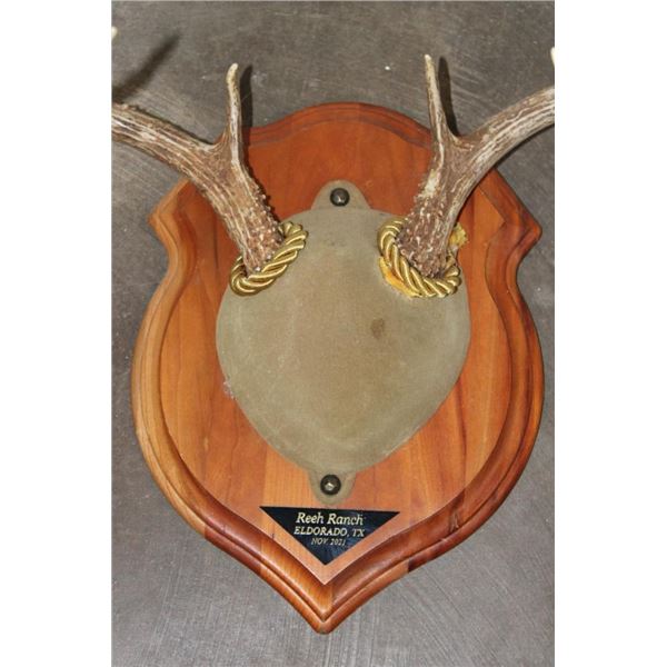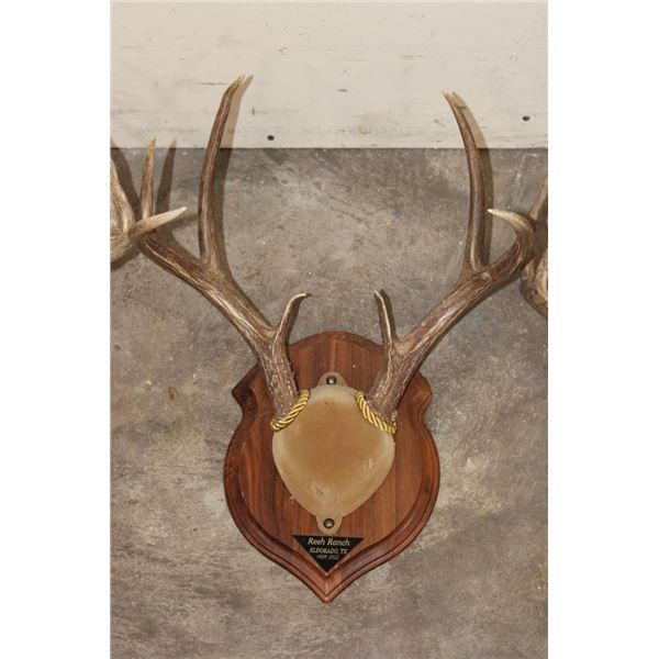 4 Mounted WHITETAIL DEER Antler Racks on Wooden Plaques. All were Taken at the Reeh Ranch in Eldorado, Texas. (ONE$) TAXIDERMY