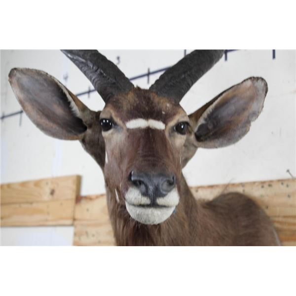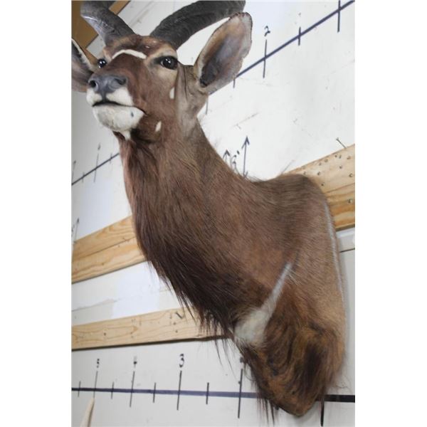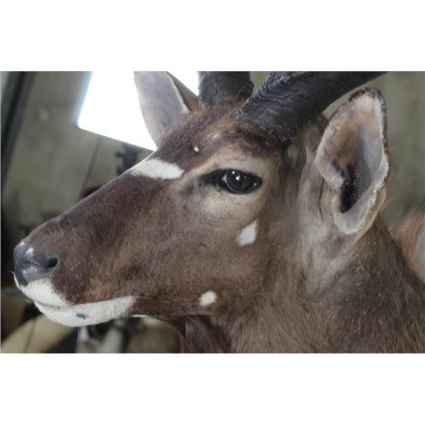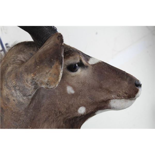 Older NYALA Shoulder Mount in Fair Condition. Right Horn measures approx.27.25" Long and Left Horn measures approx.26 7/8" Long. TAXIDERMY