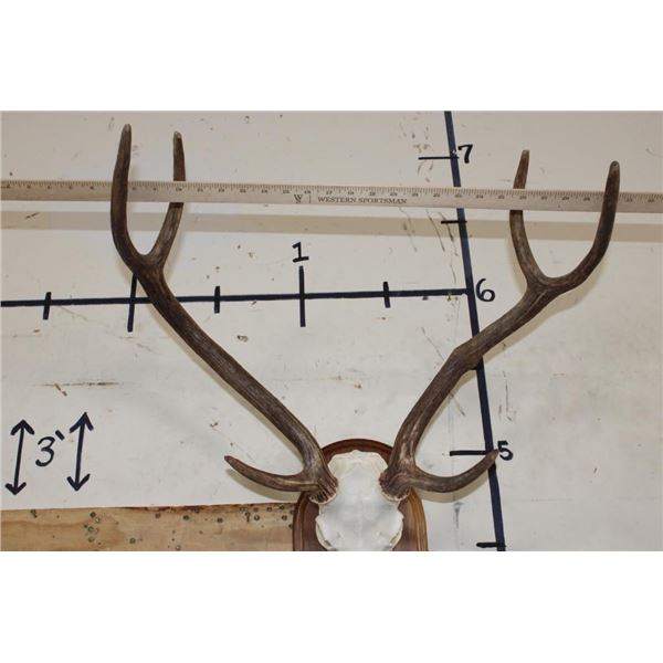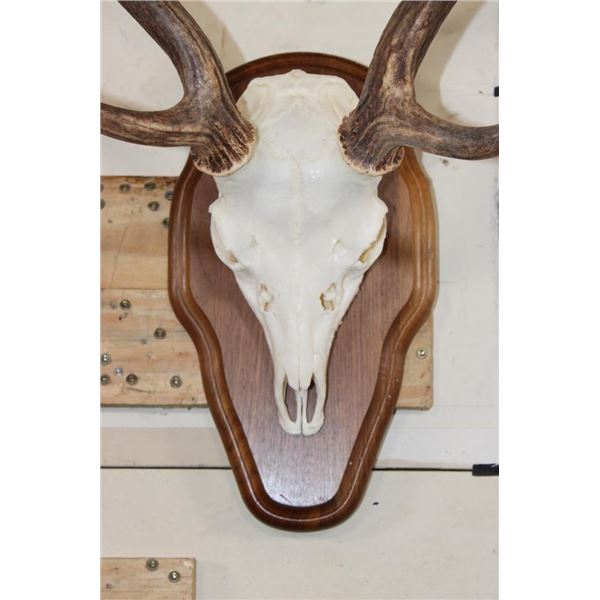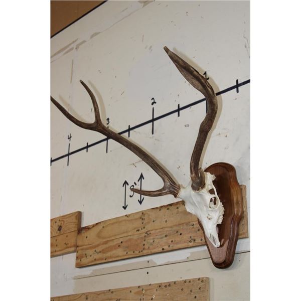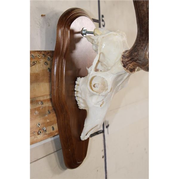 Very Nice and Clean AXIS DEER Skull on a Wooden Plaque with All its Teeth. TAXIDERMY