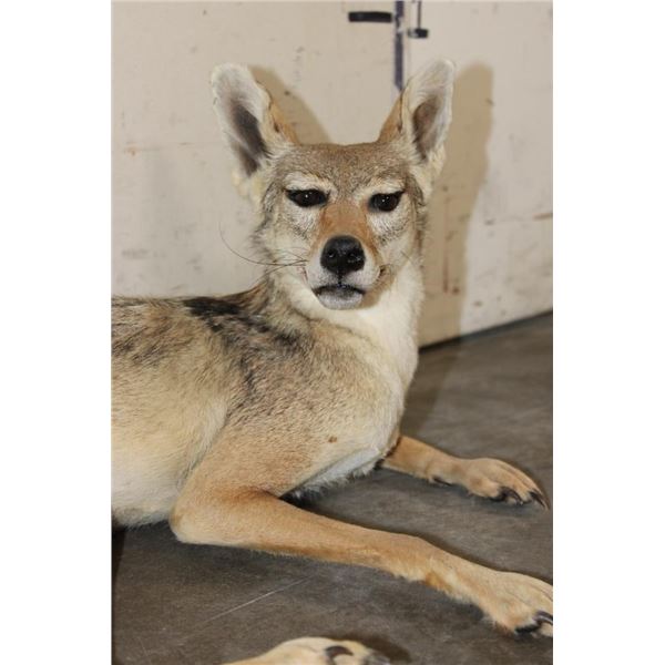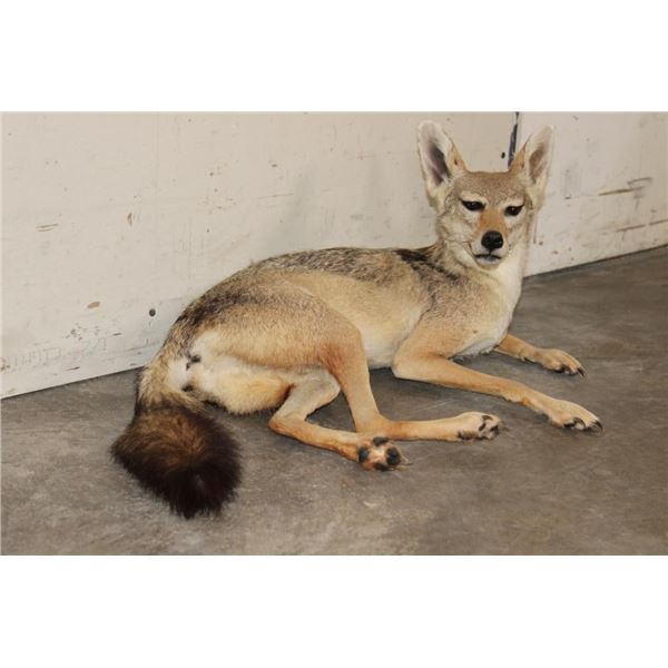 Very Nice Life-sized Freestanding or Laying BLACK-BACKED JACKAL. It measures 24" Long x 15" Wide x 11" Tall. TAXIDERMY
