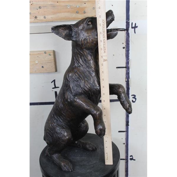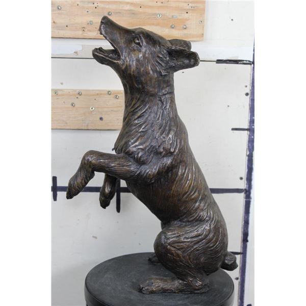 This is a BIG BRONZE DOG Sculpture is over 1.5 Feet Tall! It measures 21.5" Tall x 8.5" Wide x 14.5" Depth and has a Total Weight of 12lbs 14oz. COLLECTIBLE ART BRONZE SCULPTURES