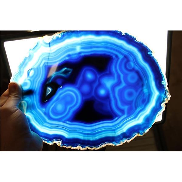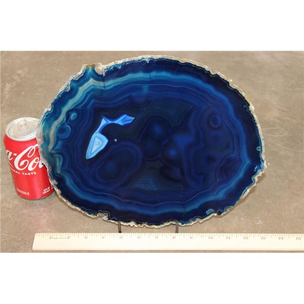 Stunning Polished Blue BRAZILIAN AGATE Slice. It measures 12.75" Long x 9.75" Tall and is just over 5/16" Thick. It weighs 1 lb 12 oz and comes with a Display Stand. ROCKS FOSSILS MINERALS
